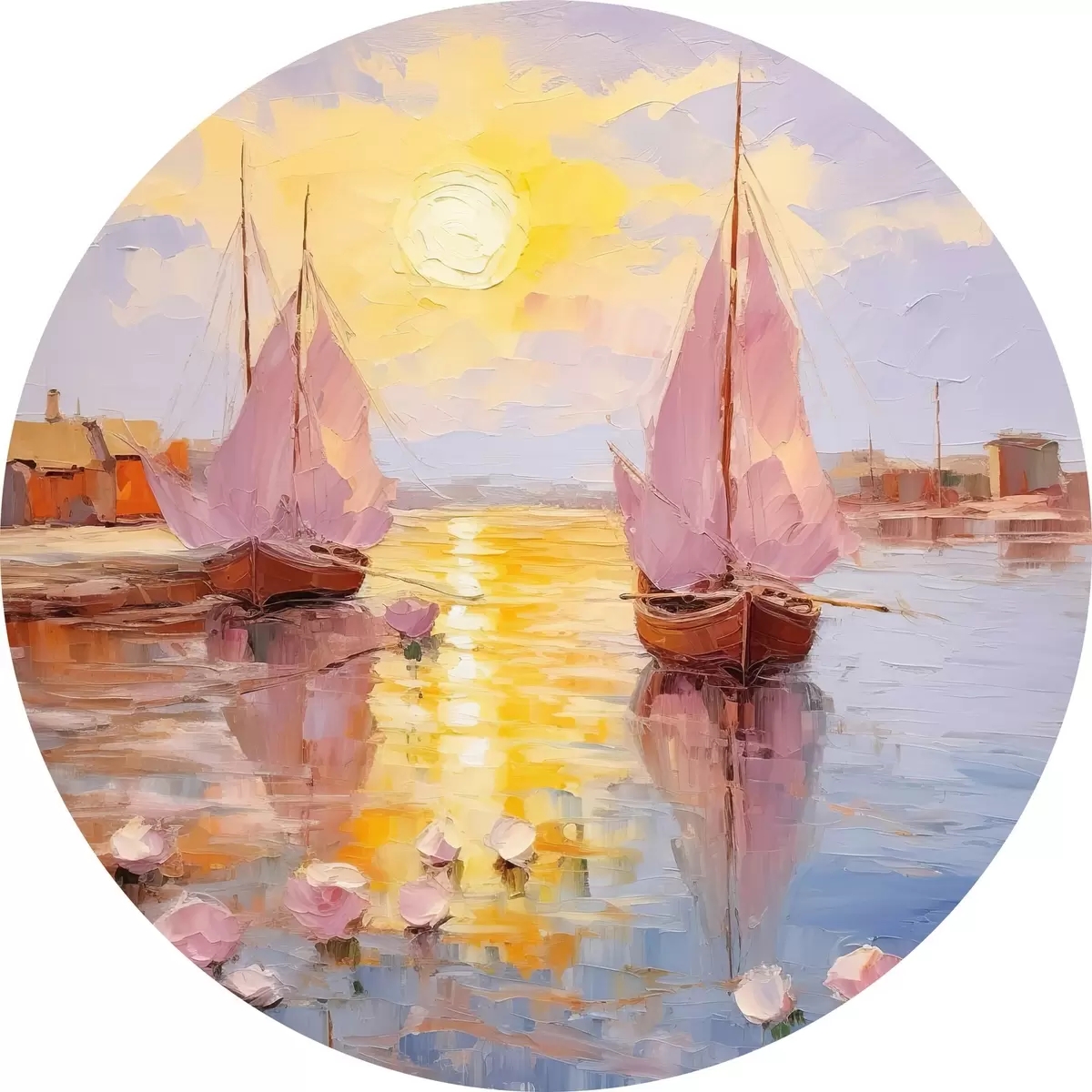 Cuadros redondos Dos barcos rosas r37881
