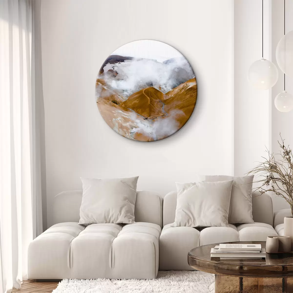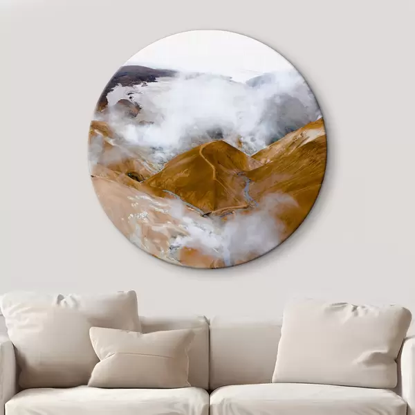 Cuadros redondos Montañas brumosas bajo un cielo nublado r37890