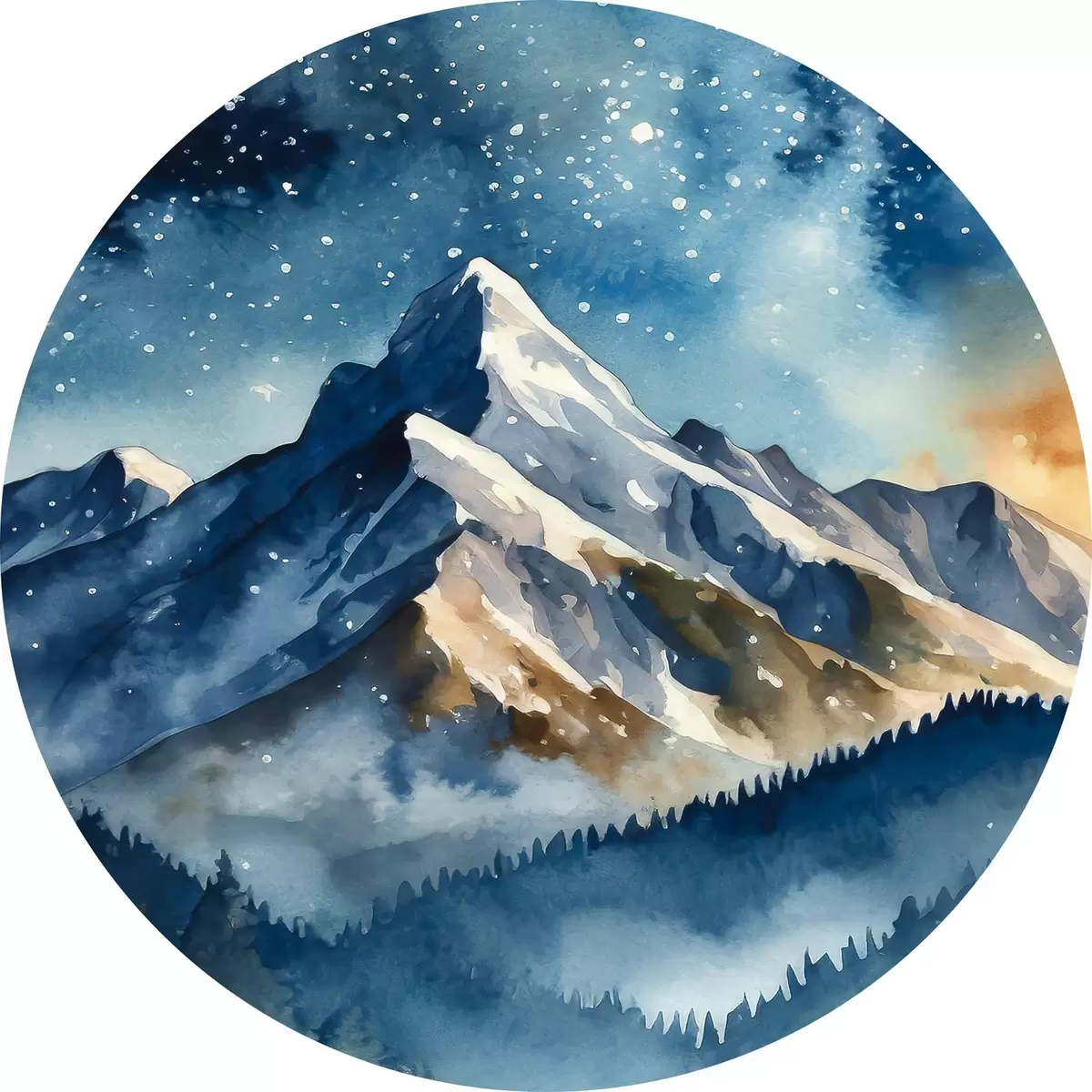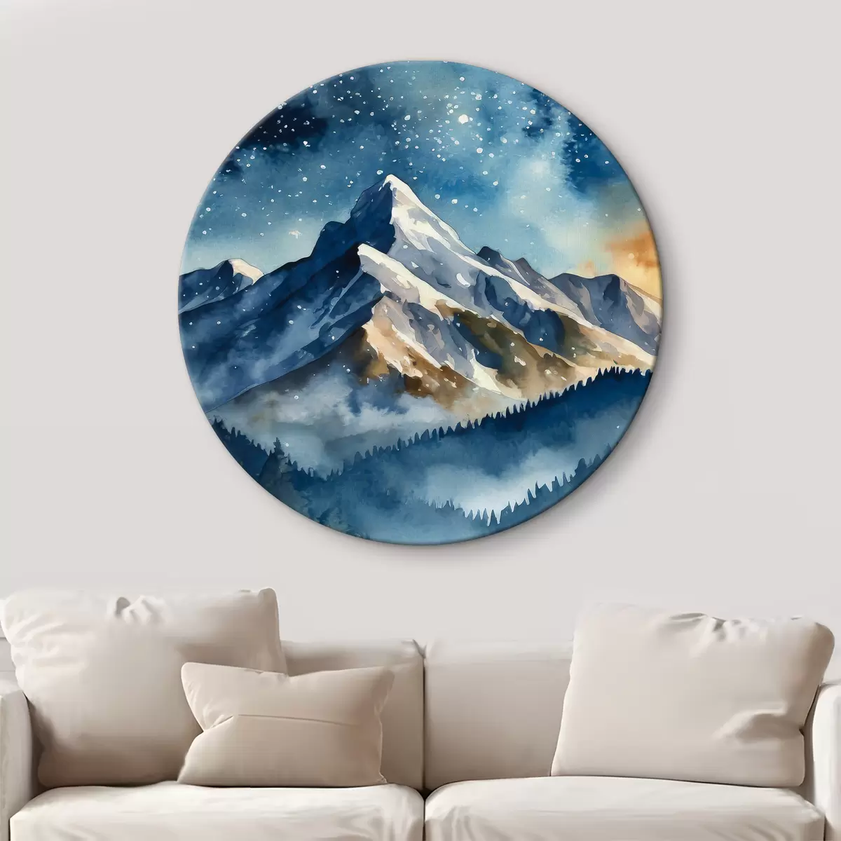 Cuadros redondos Majestuosas montañas bajo el cielo estrellado r37947