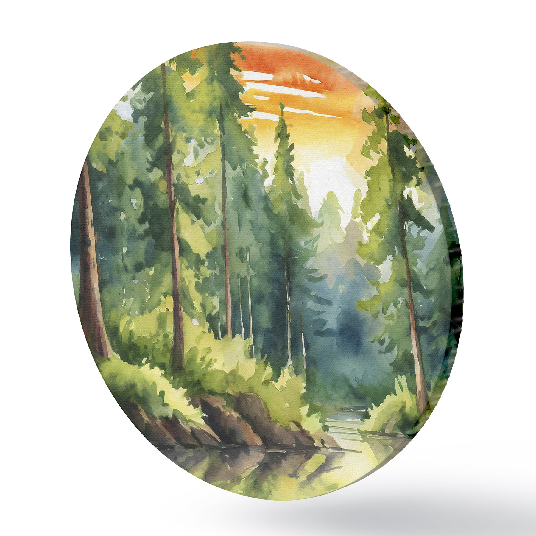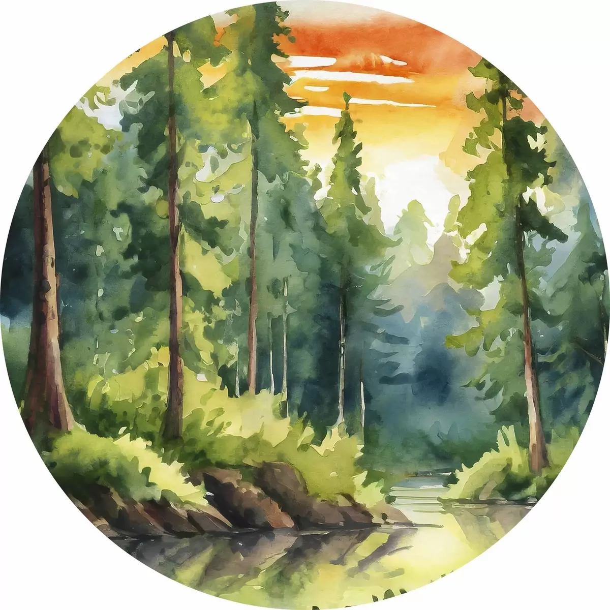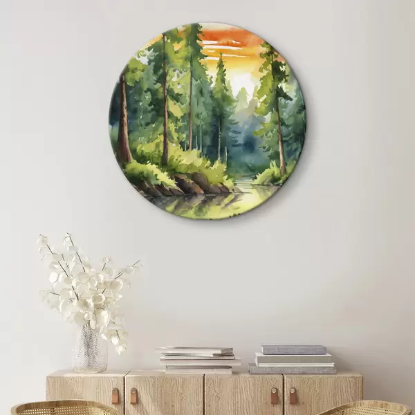 Cuadros redondos Bosque apacible cerca de un río tranquilo r37948