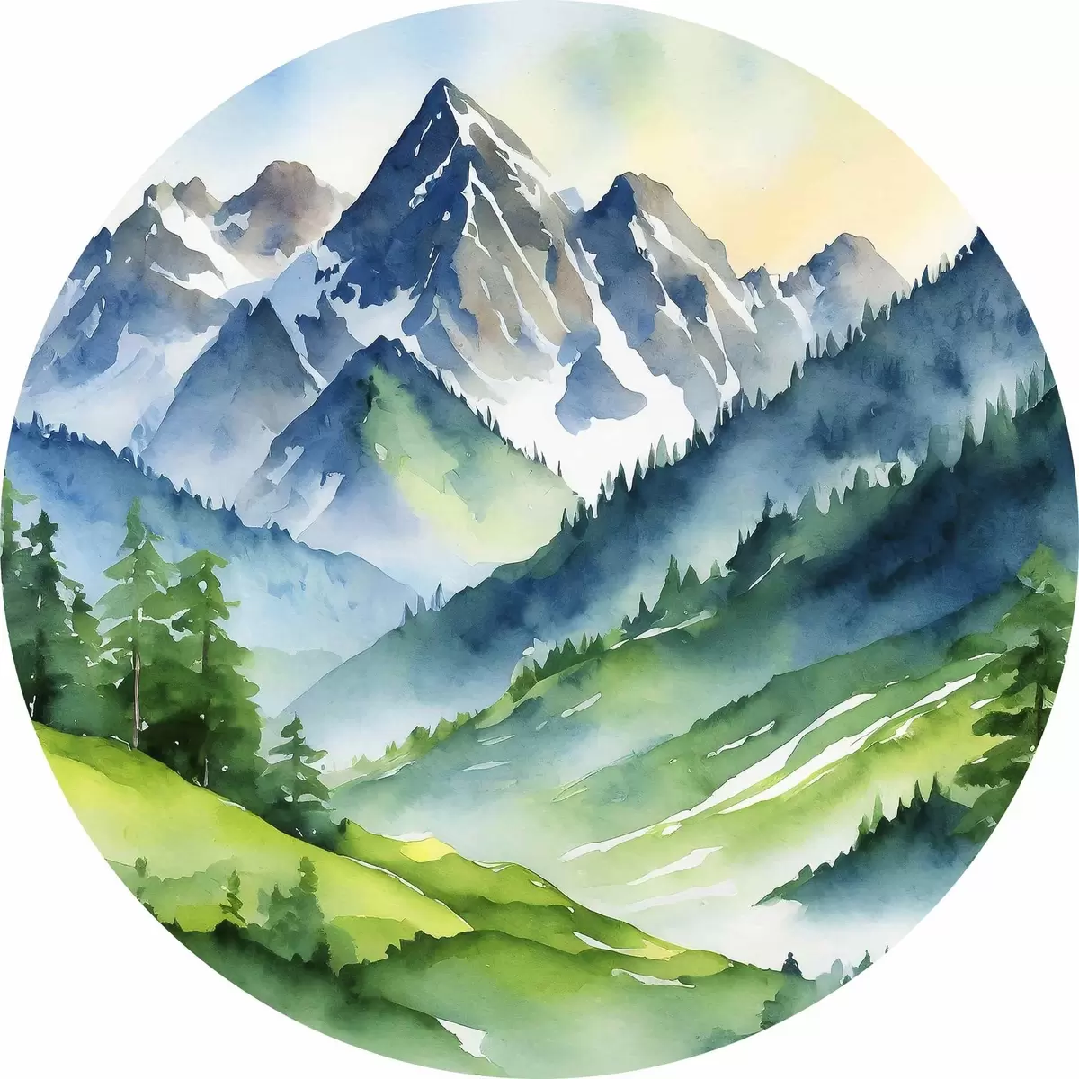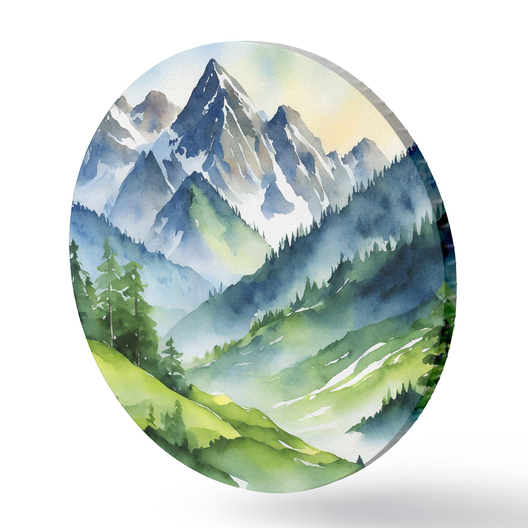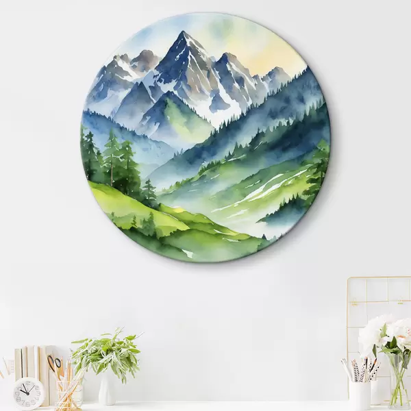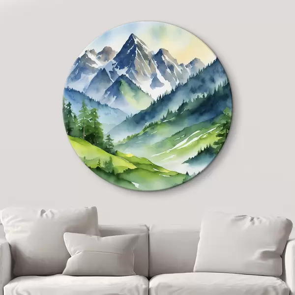 Cuadros redondos Montañas majestuosas bajo un cielo suave r37957