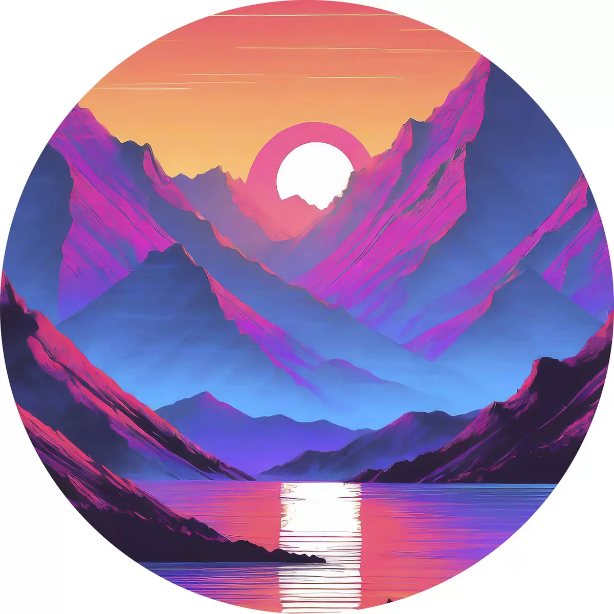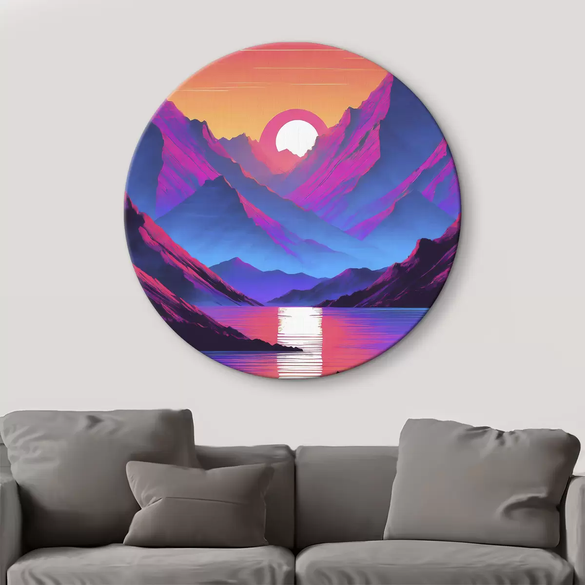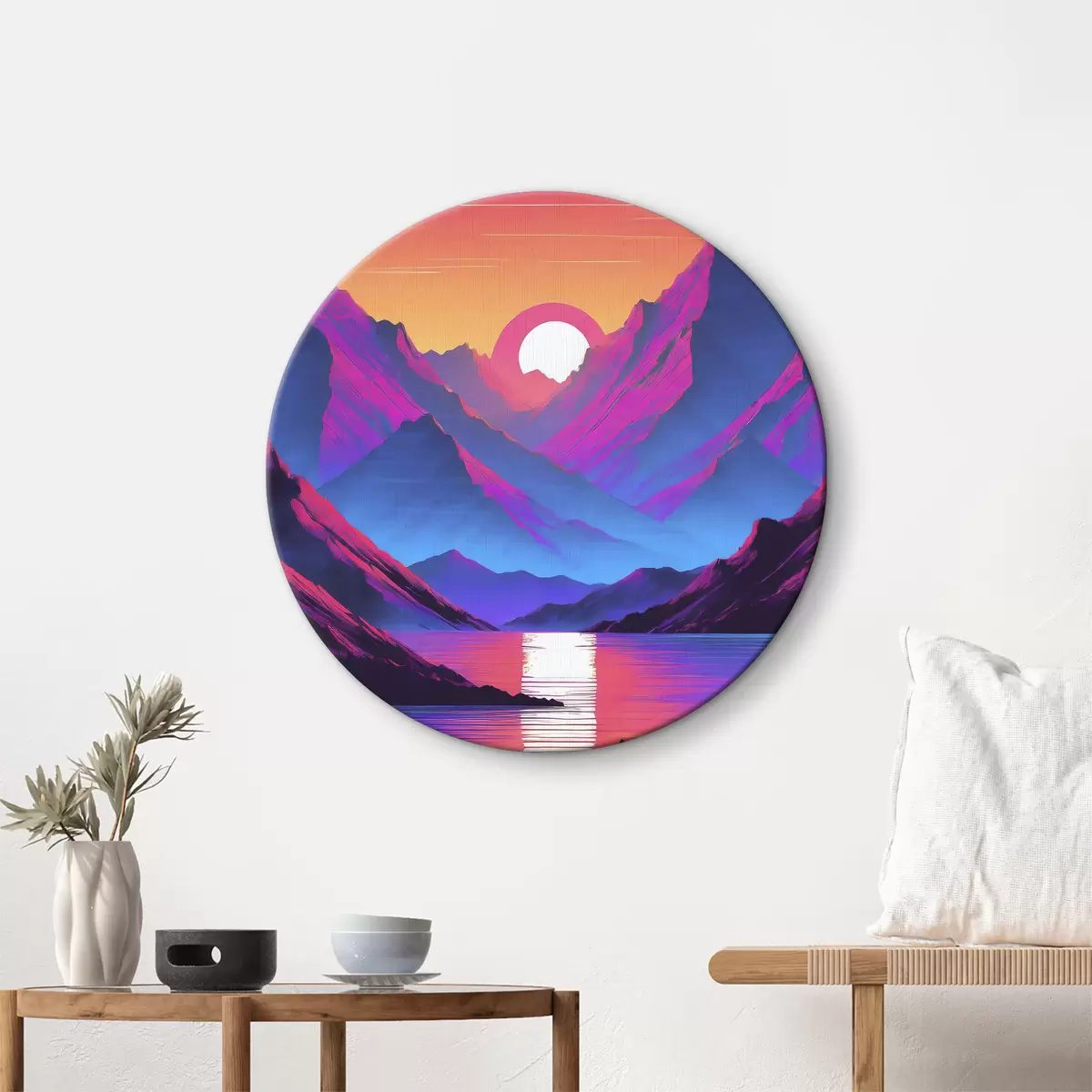 Cuadros redondos Majestuosas montañas al atardecer r37999