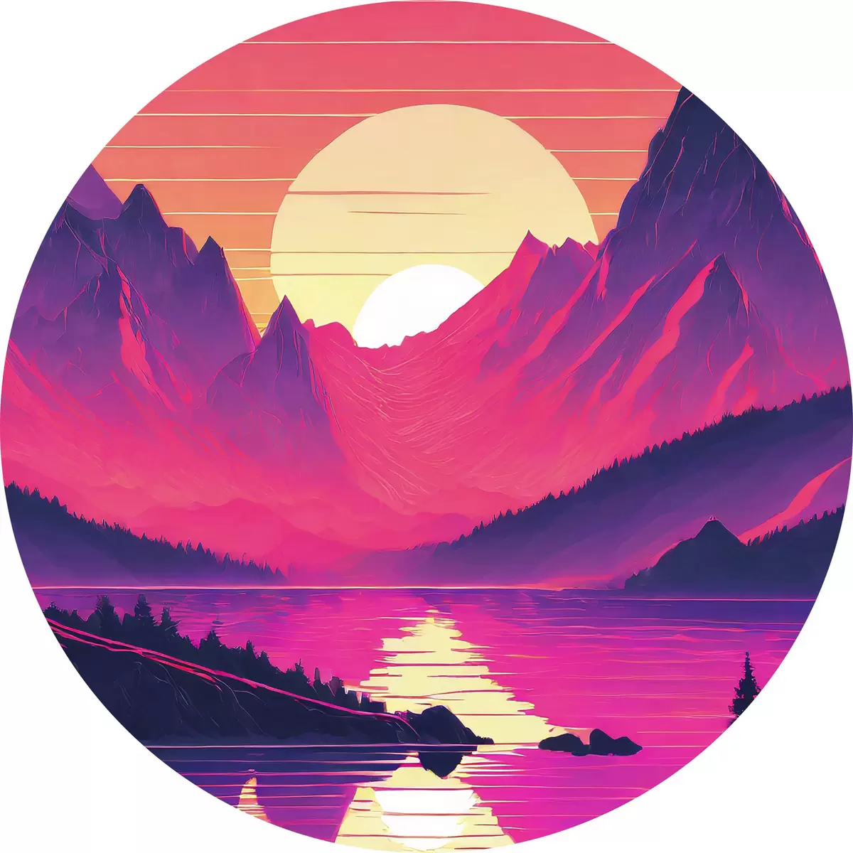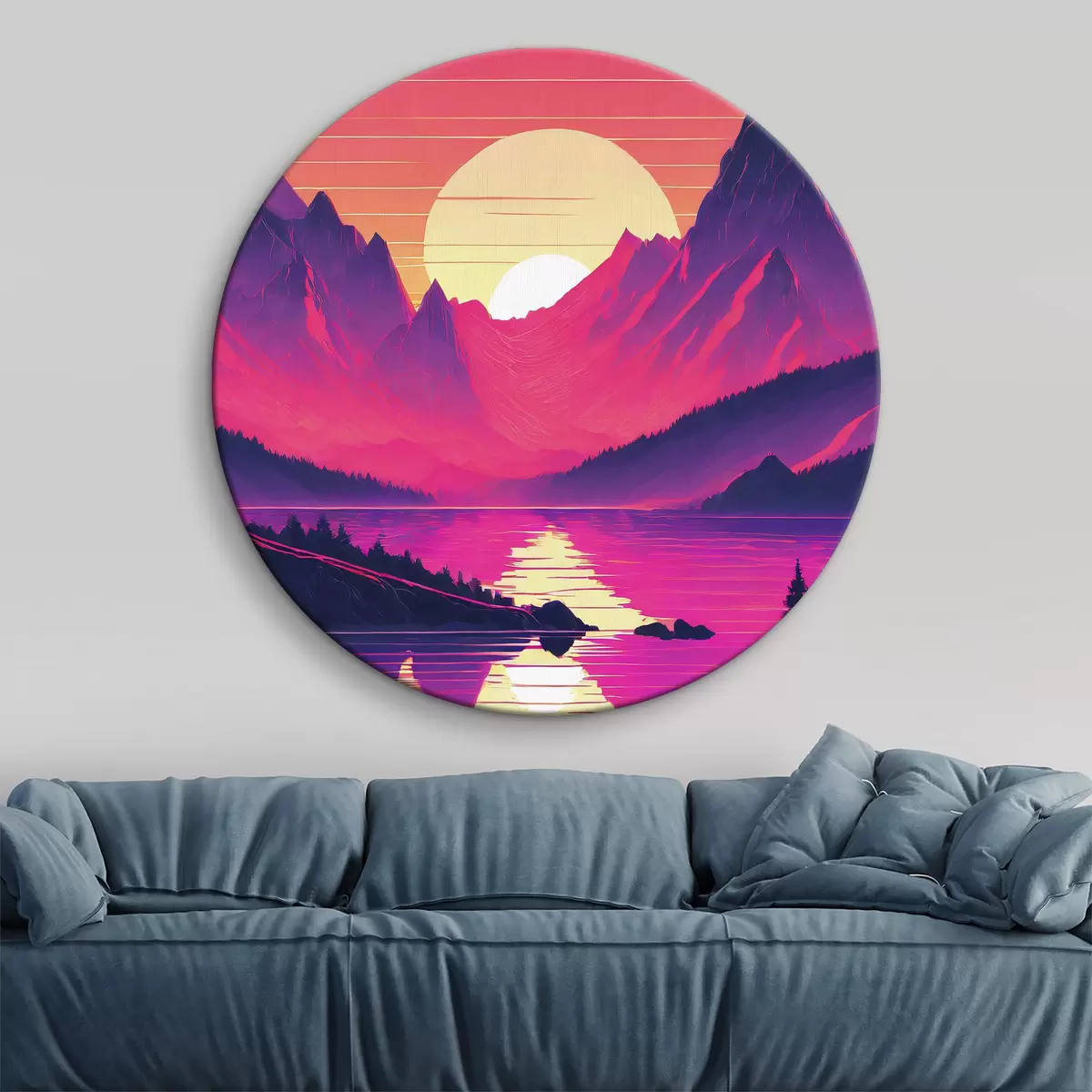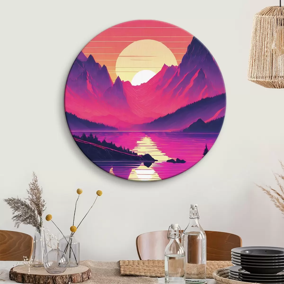 Cuadros redondos Majestuosas montañas al atardecer r38001