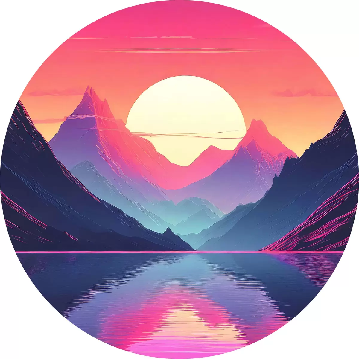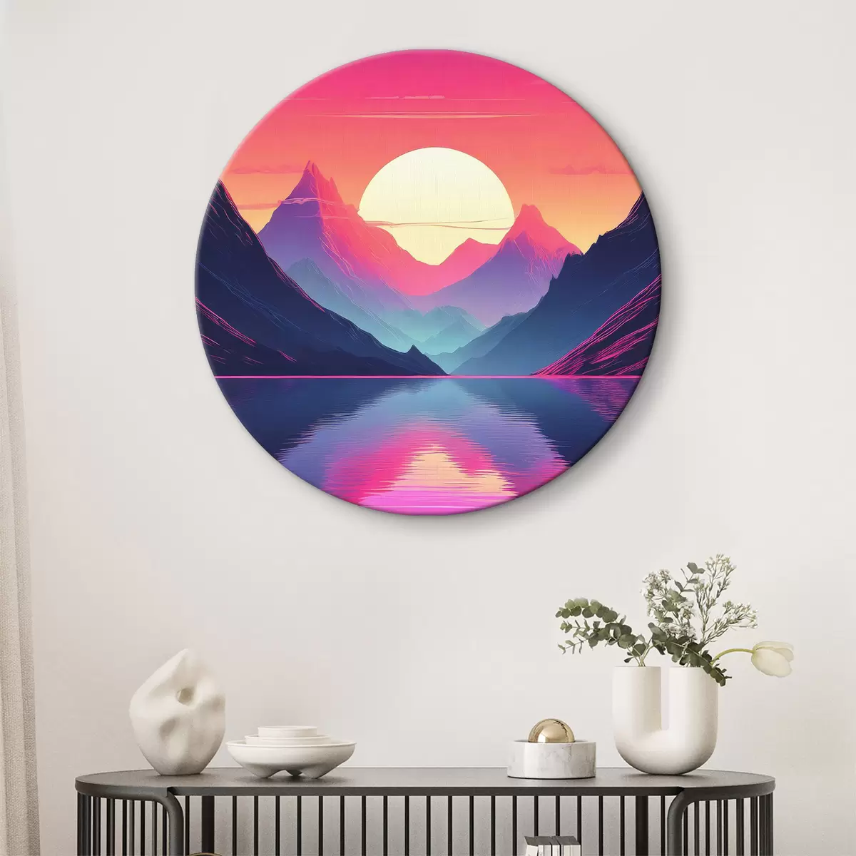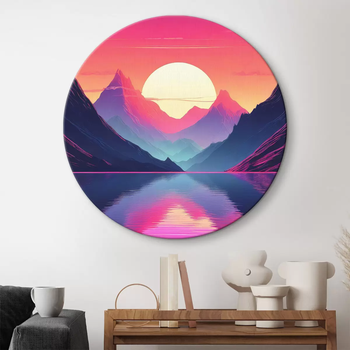 Cuadros redondos Majestuosas montañas al atardecer r38002
