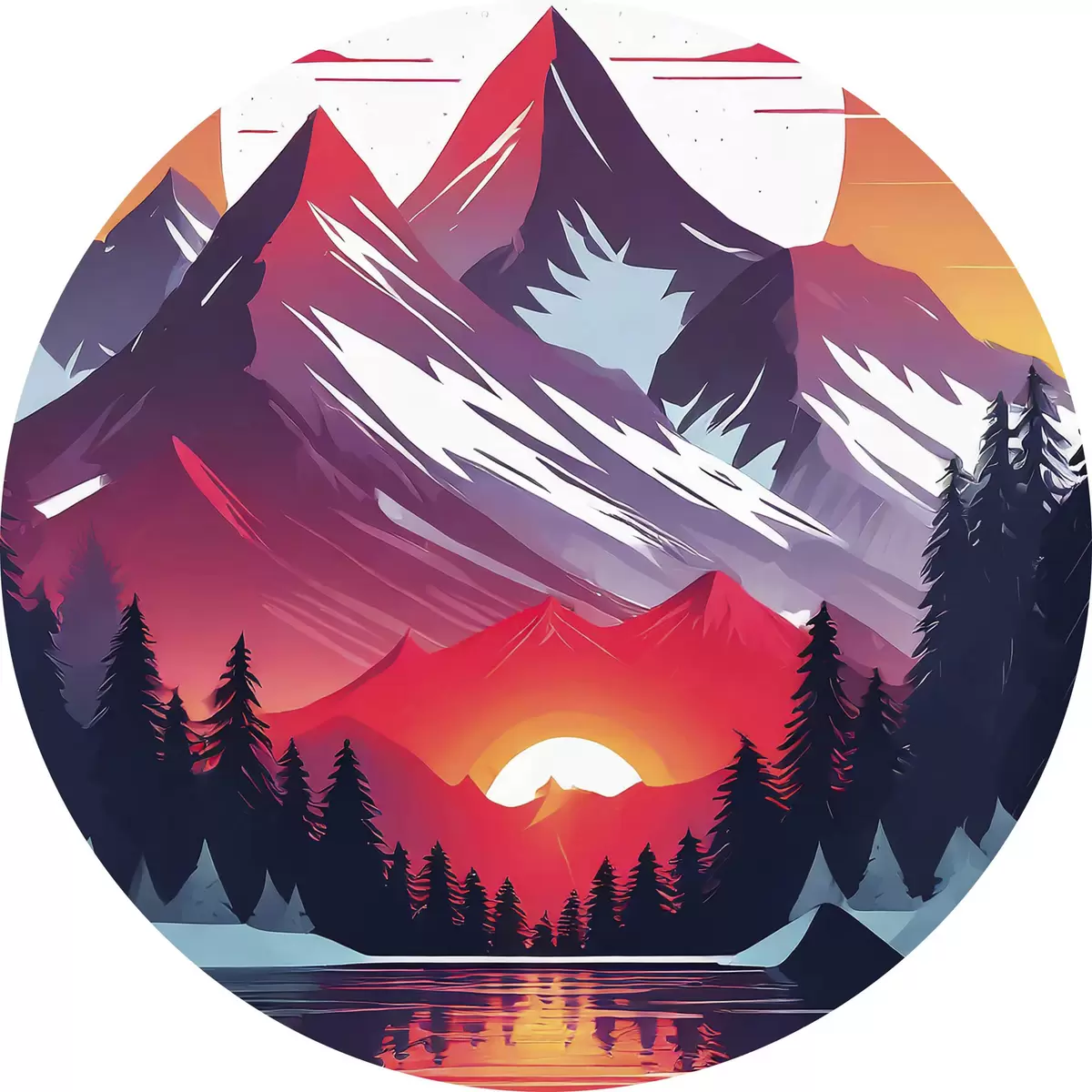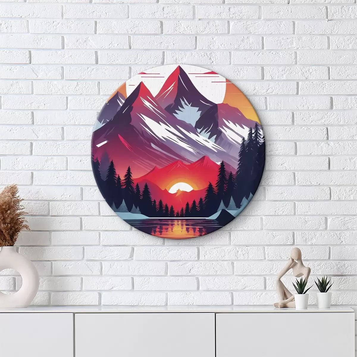 Cuadros redondos Montañas majestuosas bajo un cielo brillante r38005