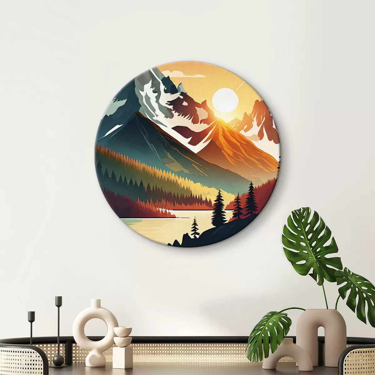 Cuadros redondos Montañas majestuosas bajo un cielo brillante r38006
