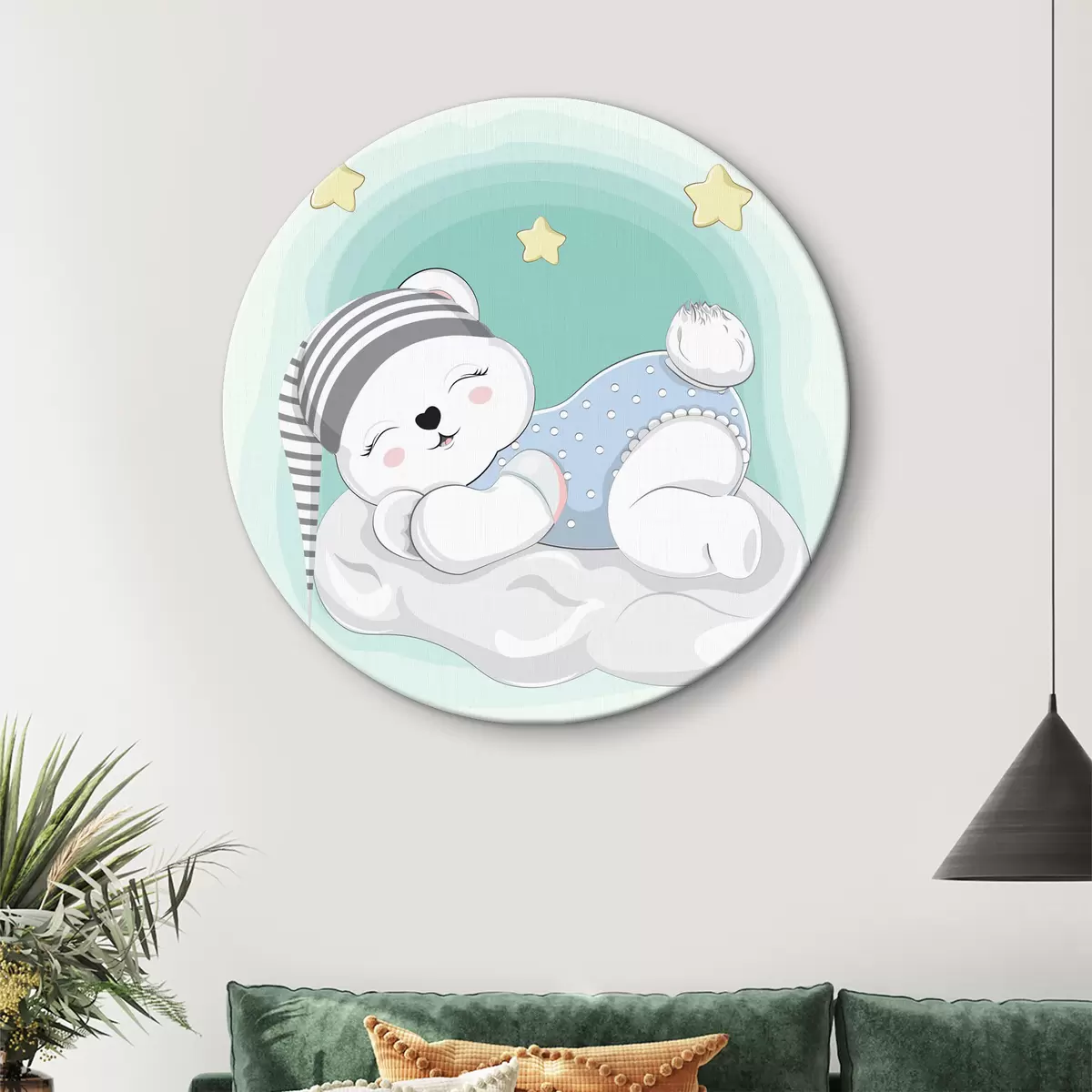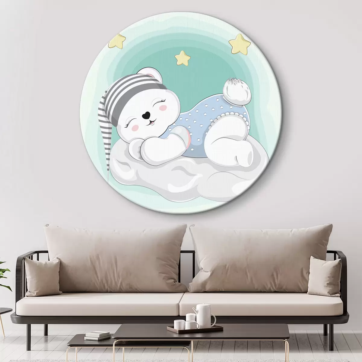 Cuadros redondos Un oso mágico sueña en una nube r38040