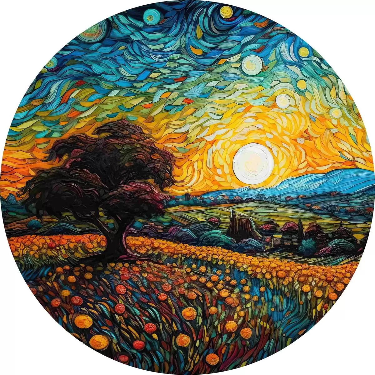 Cuadros redondos Puesta de sol brillante r38059