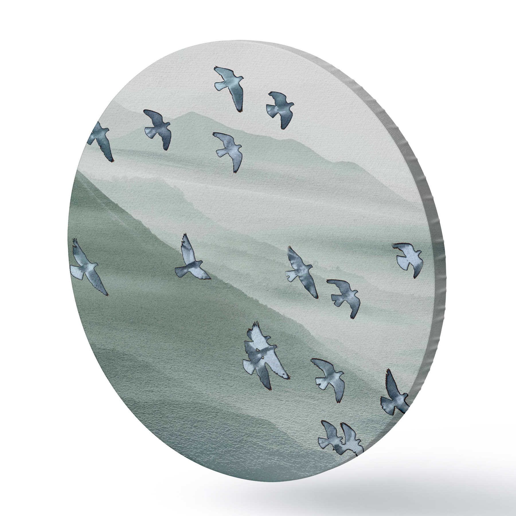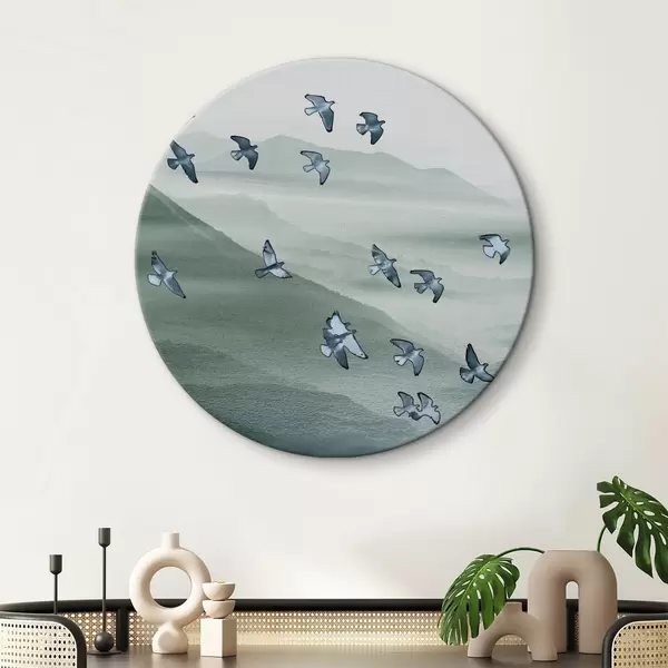Cuadros redondos Una bandada de pájaros sobrevolando las montañas r38069