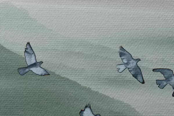 Foto Una bandada de pájaros sobrevolando las montañas Nr r38069