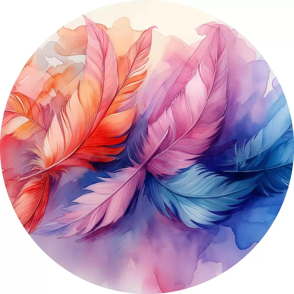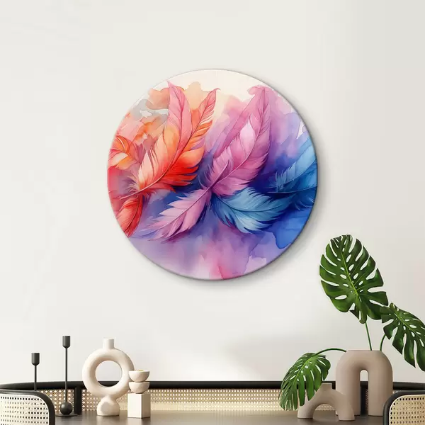 Cuadros redondos Plumas de colores sobre fondo blanco r38093
