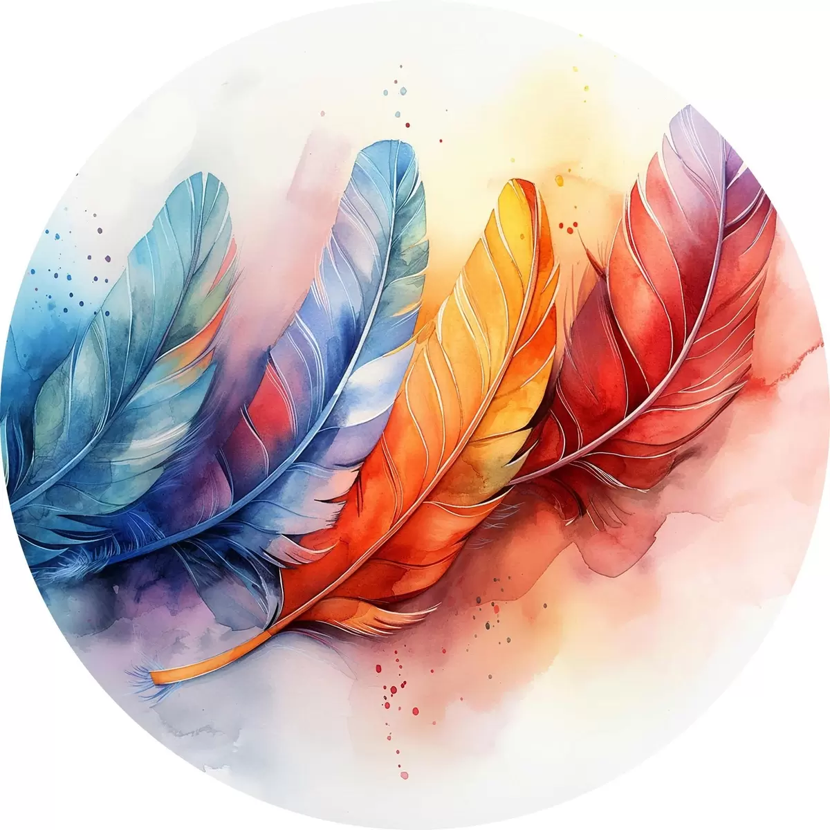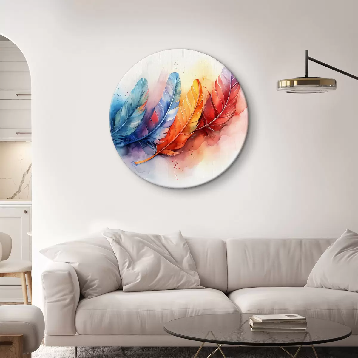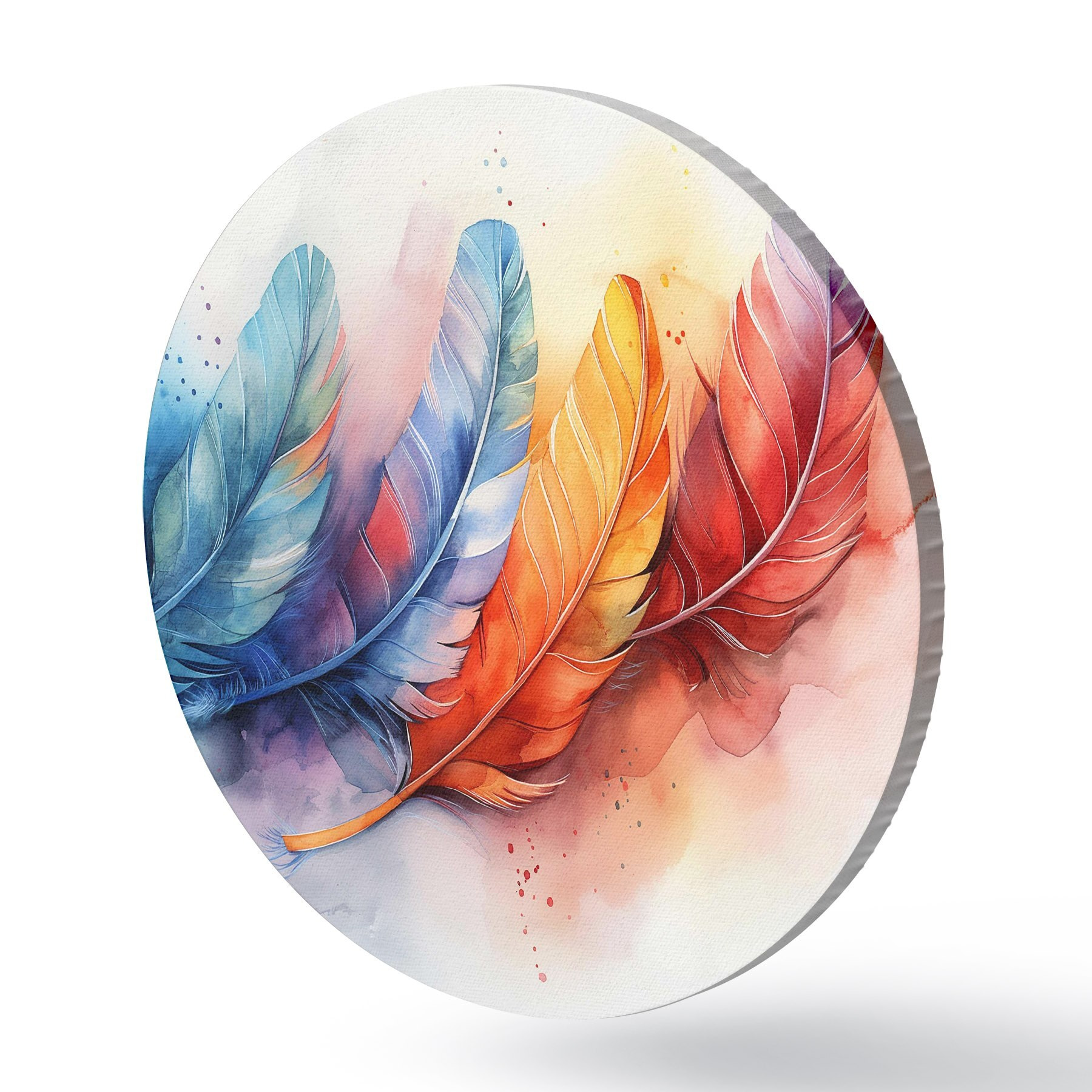 Cuadros redondos Plumas de colores sobre fondo blanco r38094