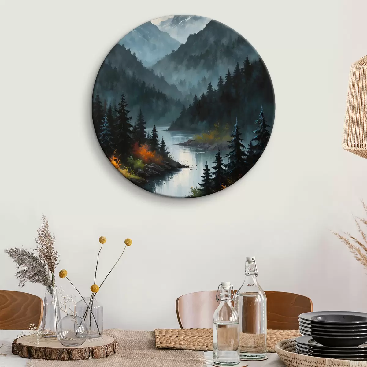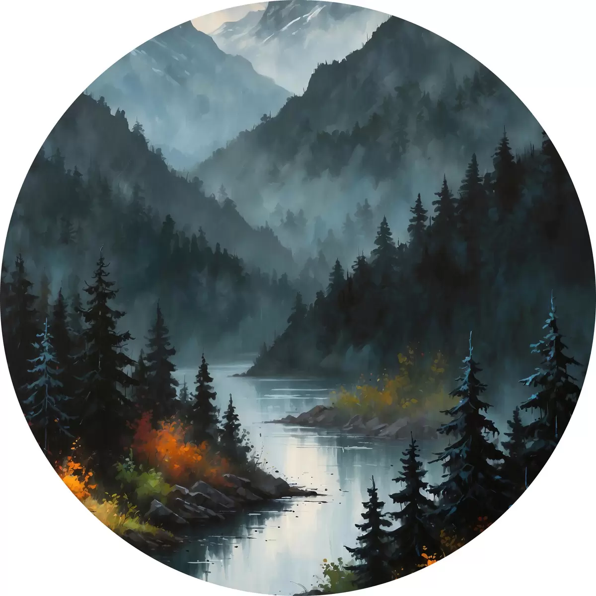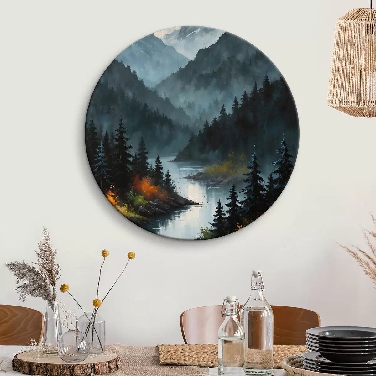 Cuadros redondos Un río que fluye por un valle de montaña r38096