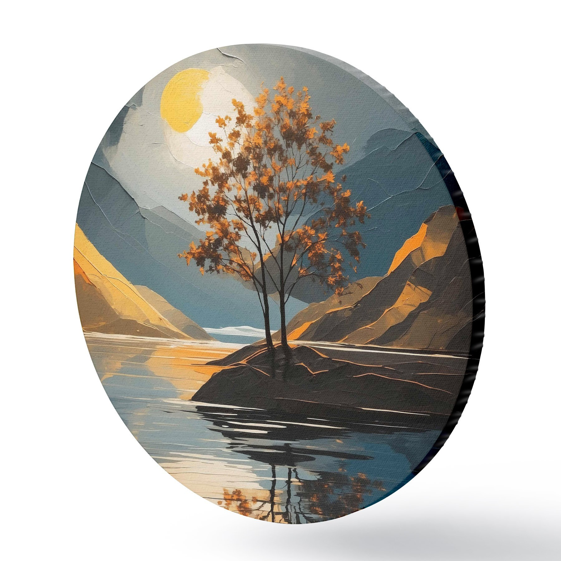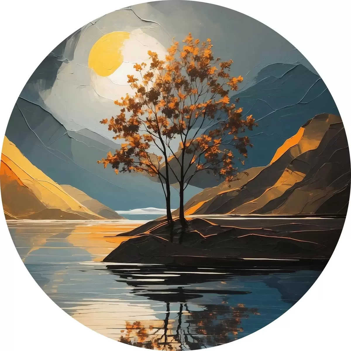 Cuadros redondos Un árbol en una pequeña isla del lago r38112