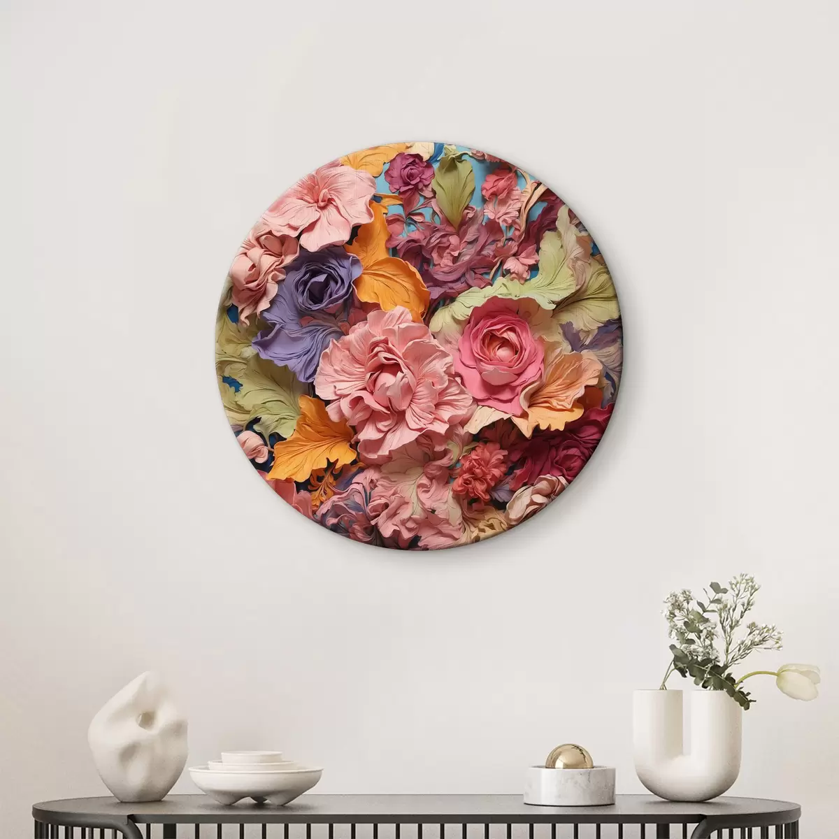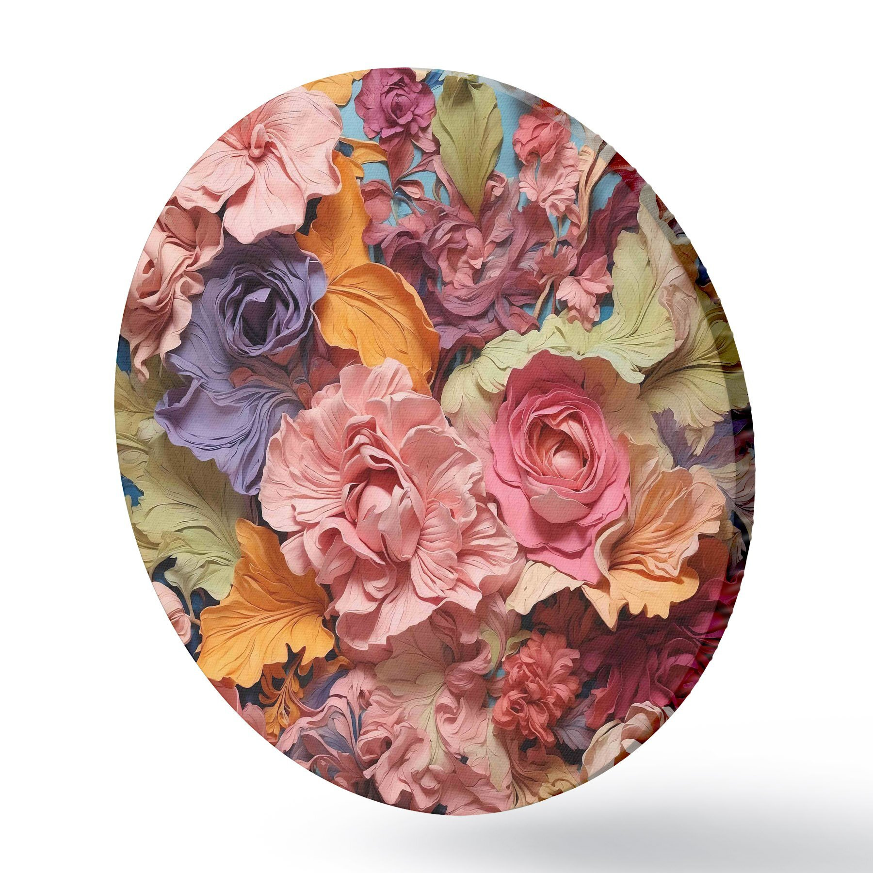 Cuadros redondos Grupo de flores sobre una superficie azul r38116