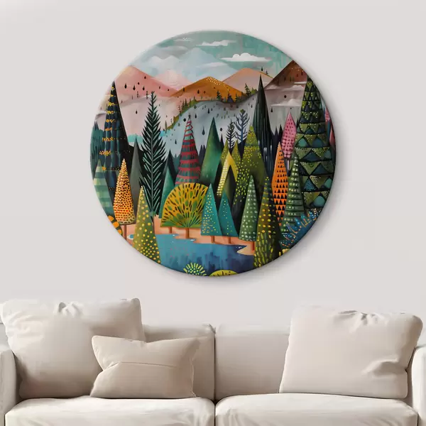 Cuadros redondos Un cuadro de árboles y un río r38157