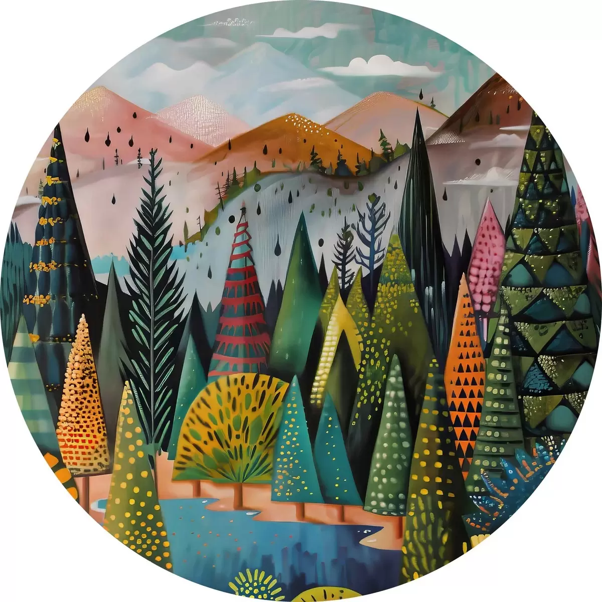 Cuadros redondos Un cuadro de árboles y un río r38157