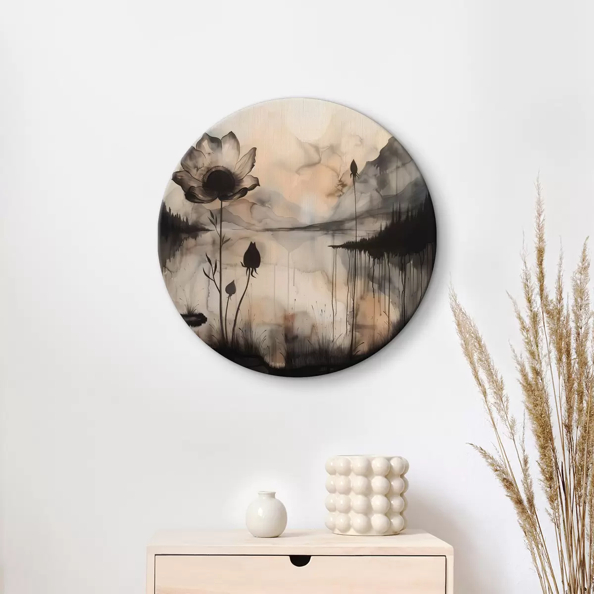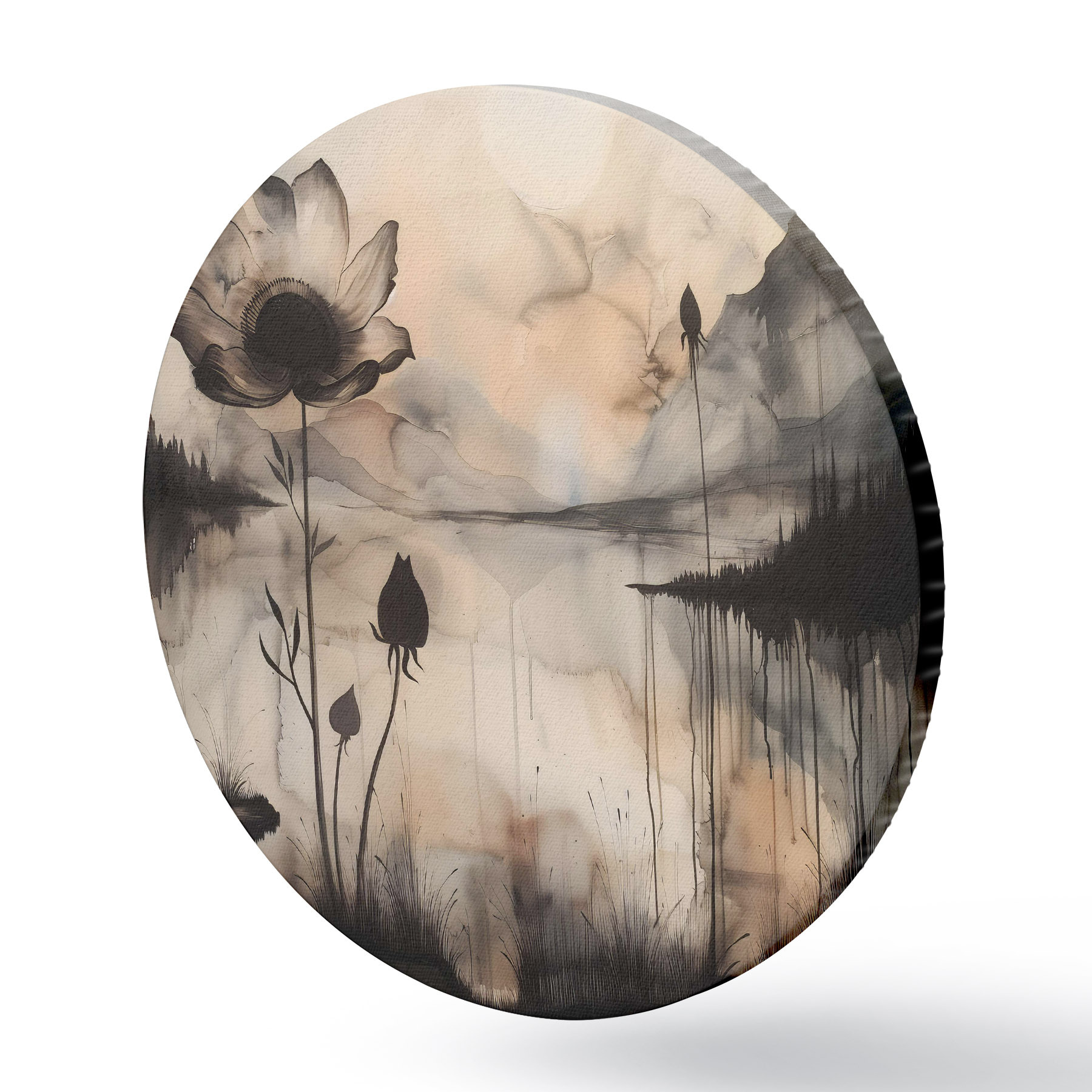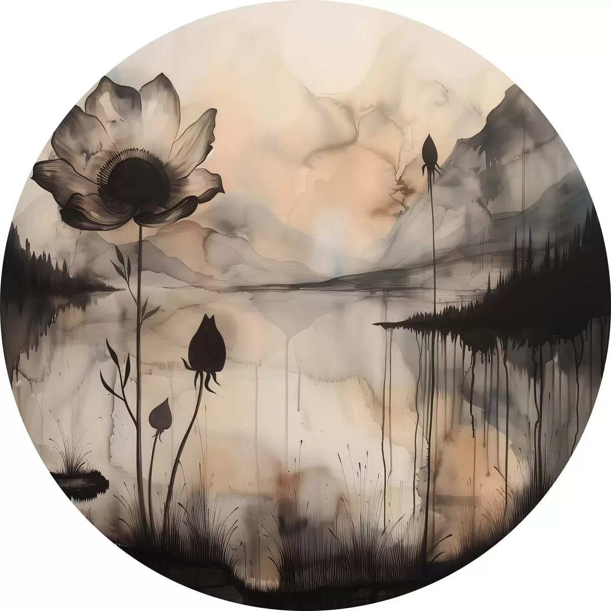 Cuadros redondos Un cuadro de una flor y un lago r38161