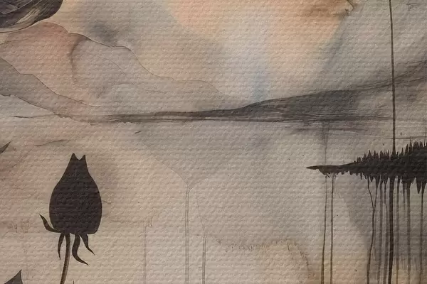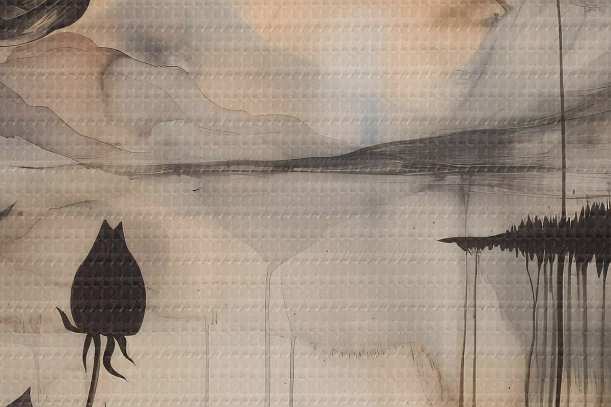 Foto Un cuadro de una flor y un lago Nr r38161