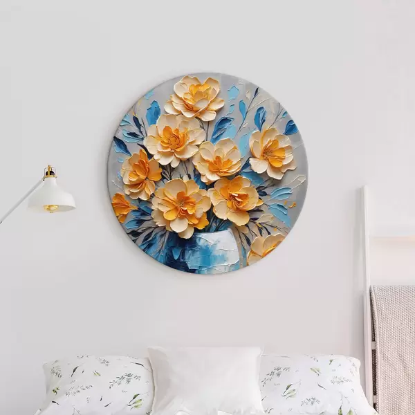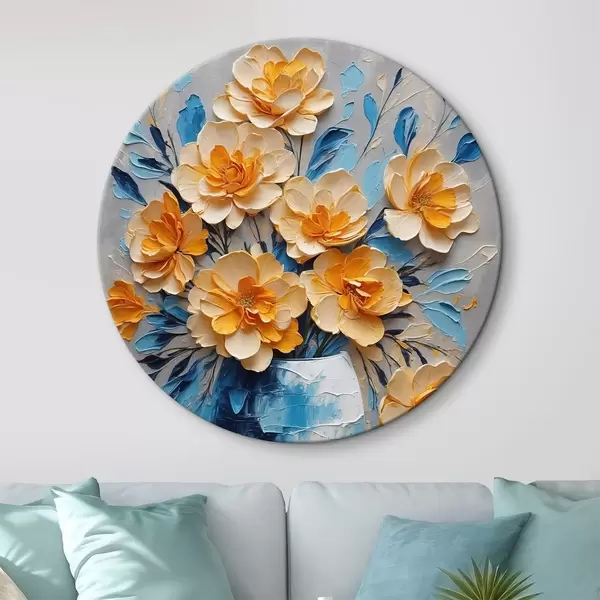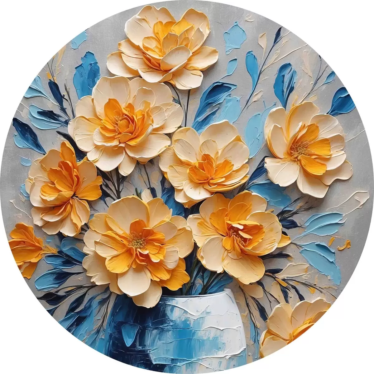 Cuadros redondos Flores en un jarrón azul sobre fondo gris r38175