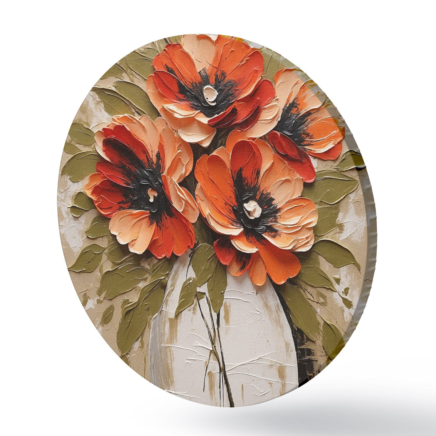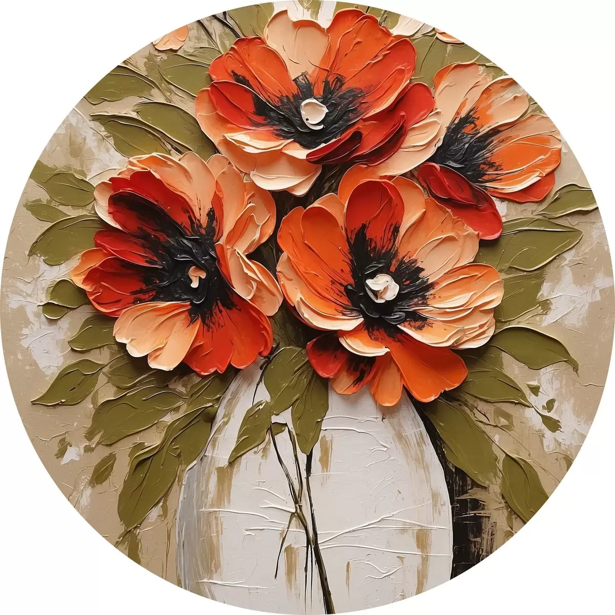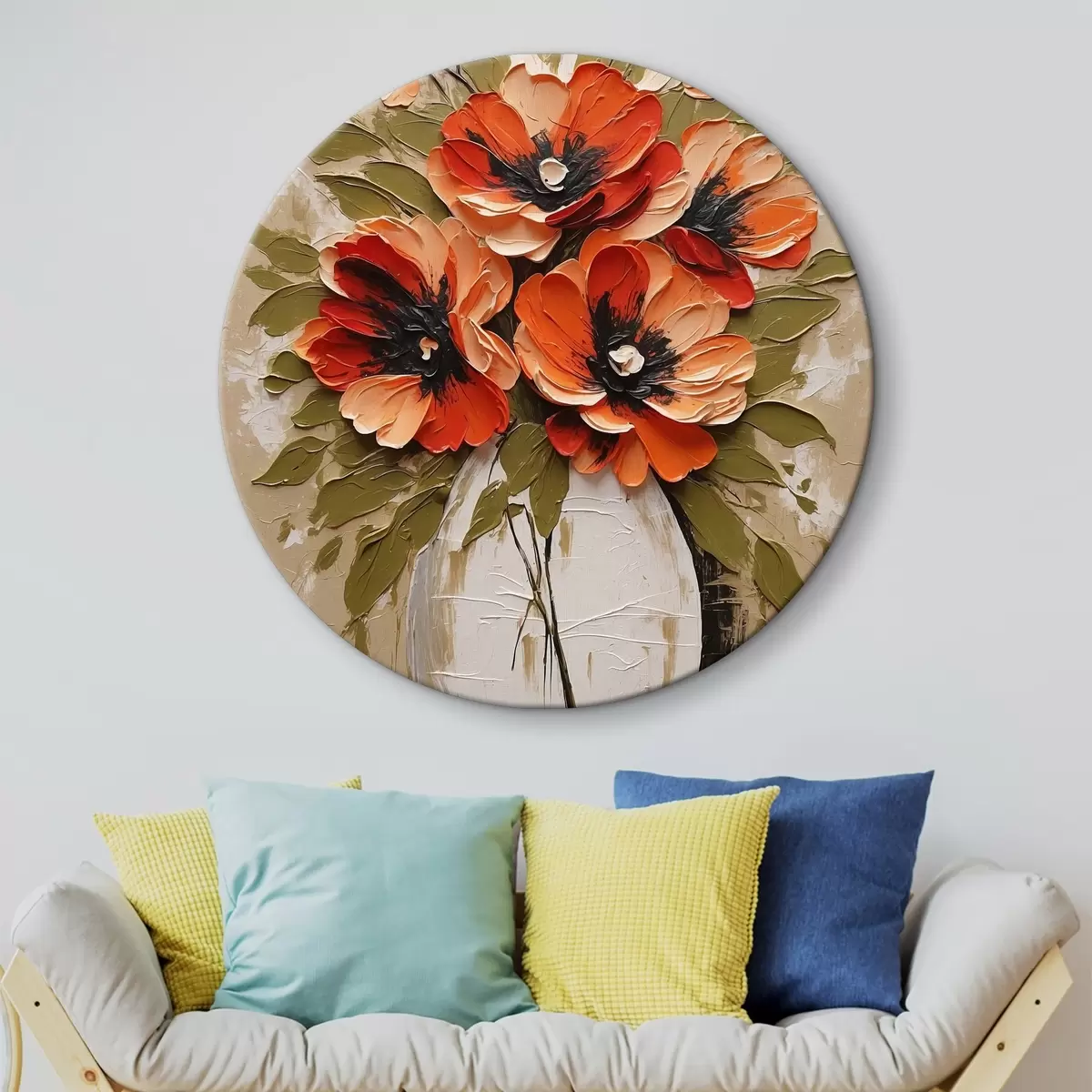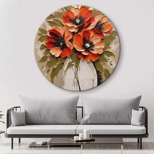 Cuadros redondos Flores en jarrón blanco sobre fondo rosa r38176