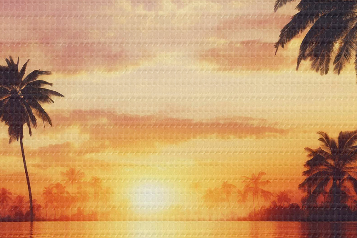 Foto Puesta de sol sobre un embalse con palmeras Nr r38183