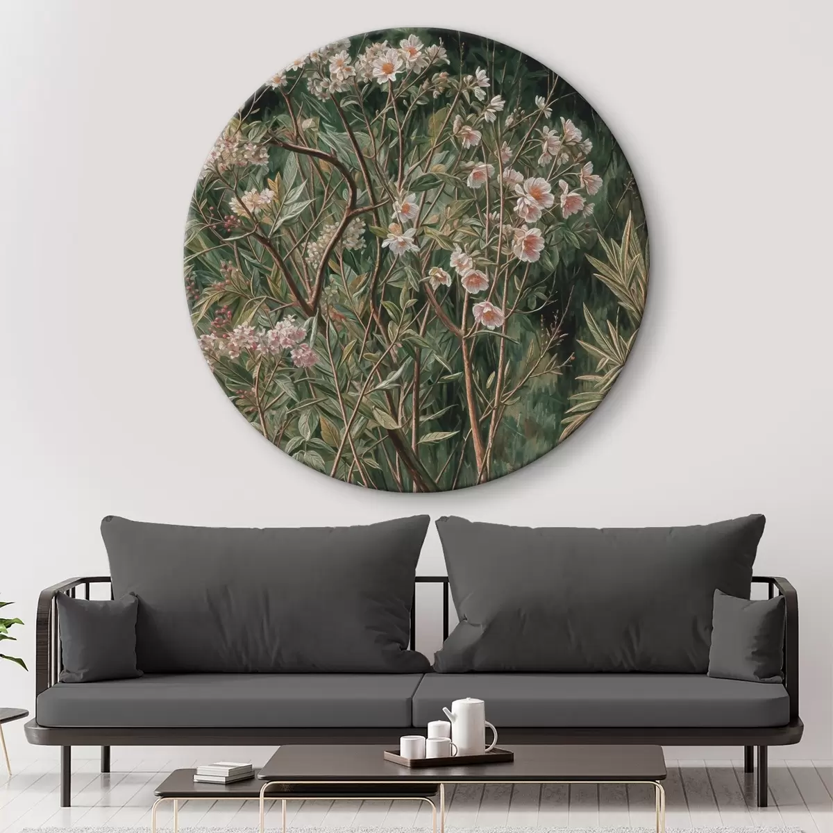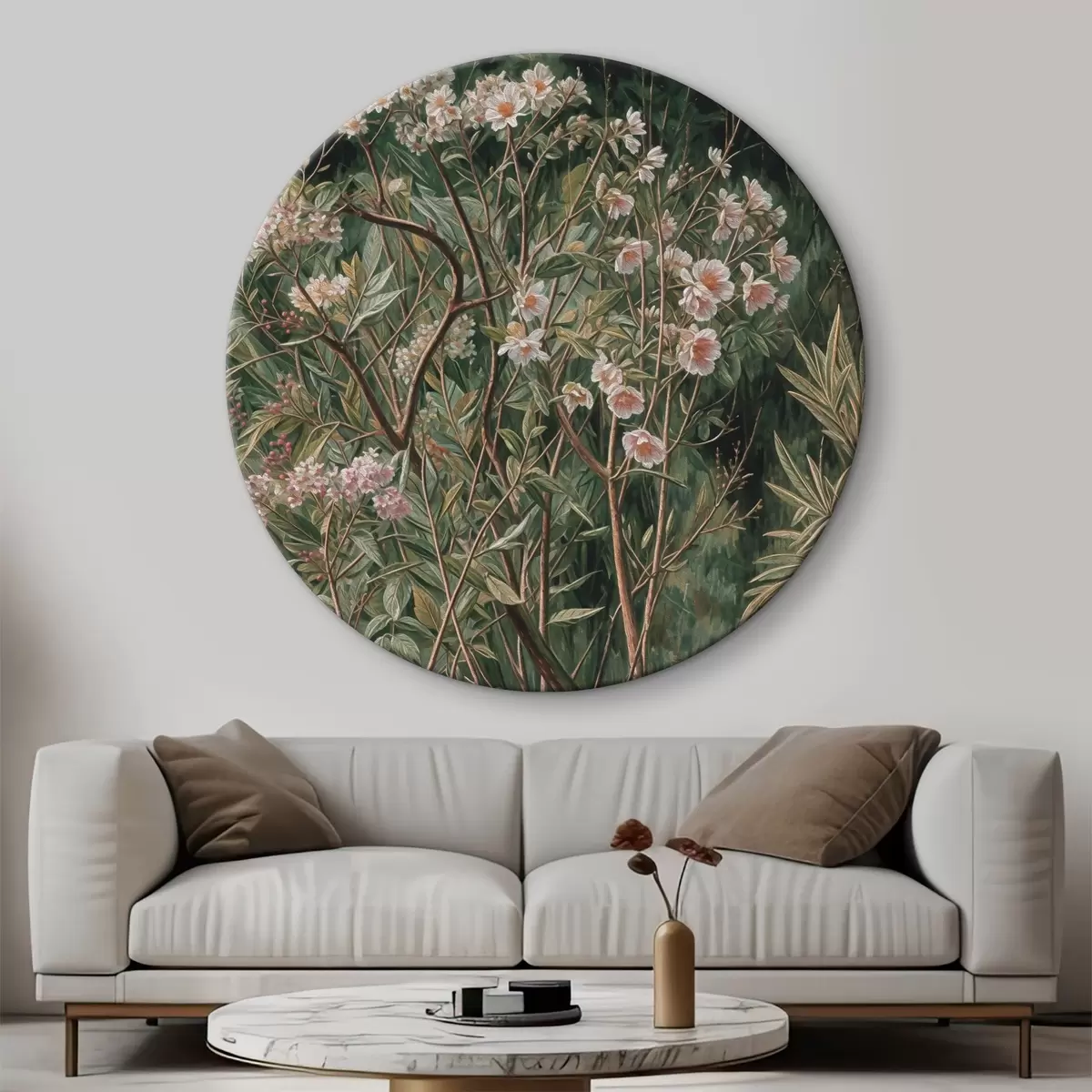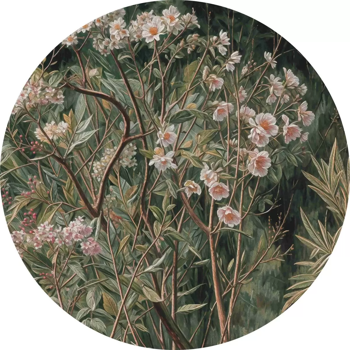 Cuadros redondos Pintar un arbusto con flores r38198