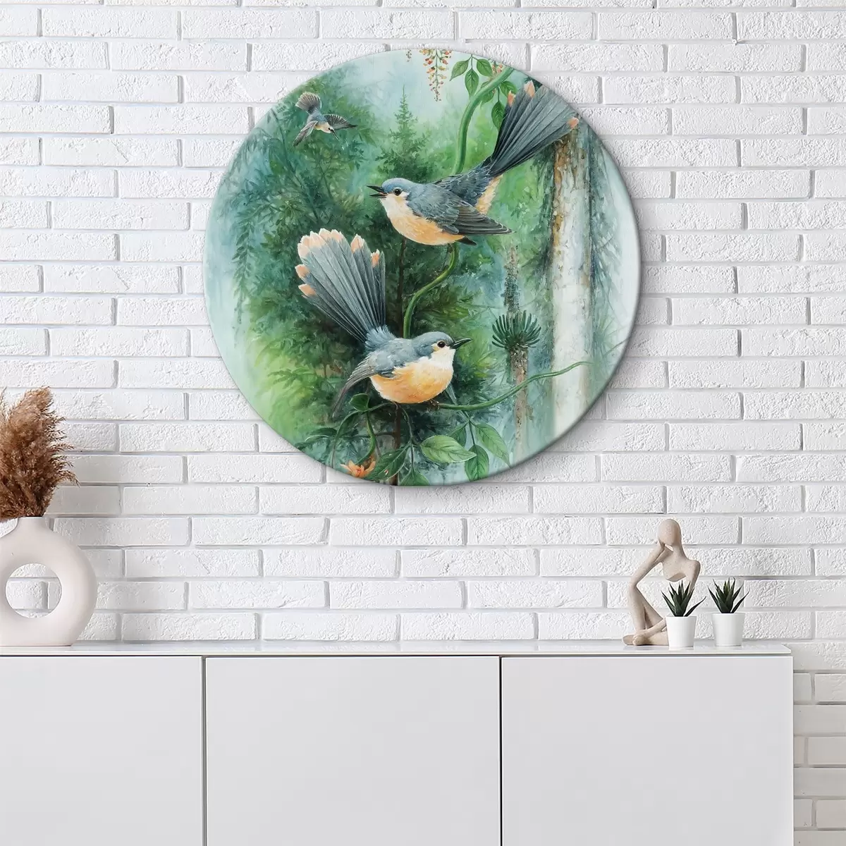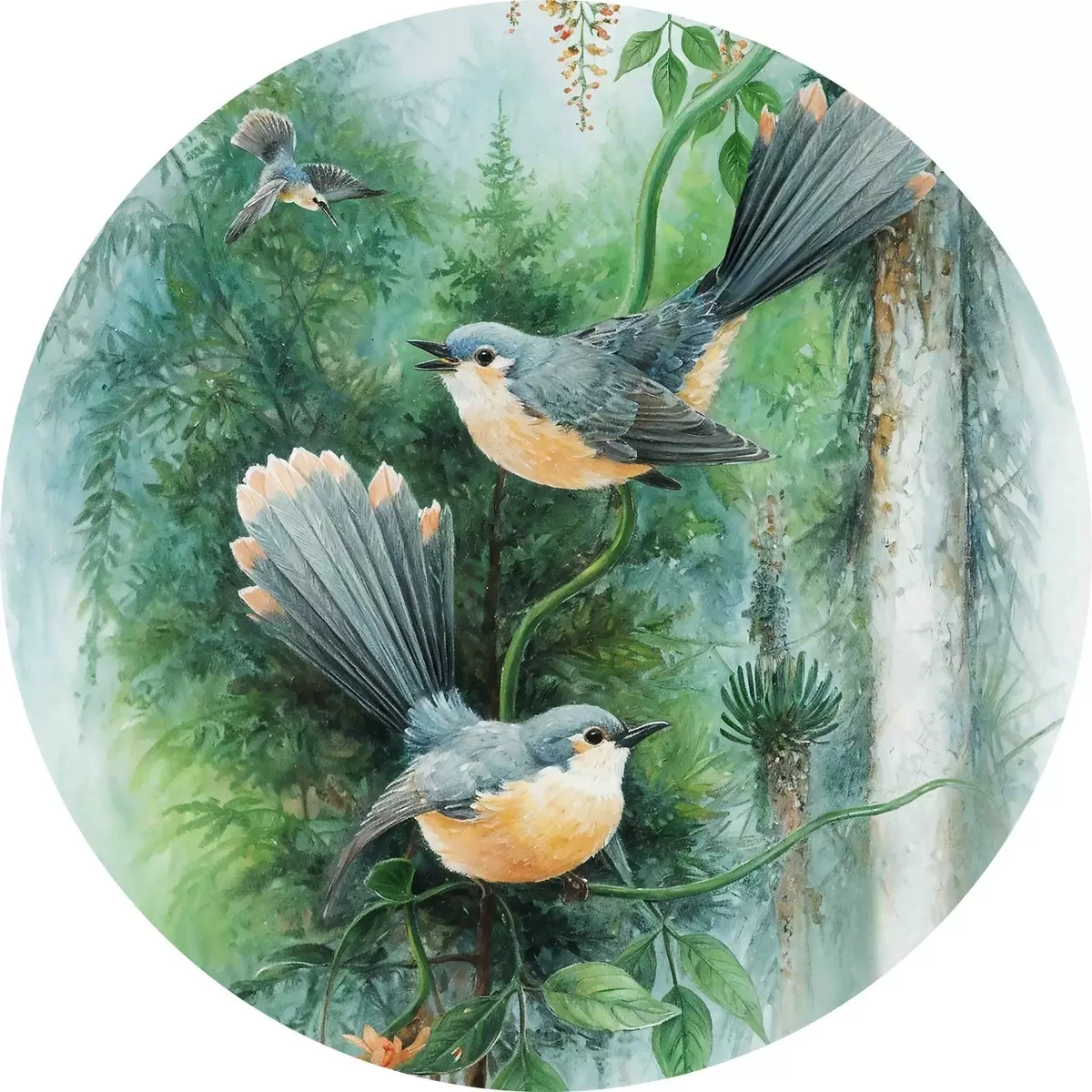 Cuadros redondos Pintar pájaros en la rama de un árbol r38202