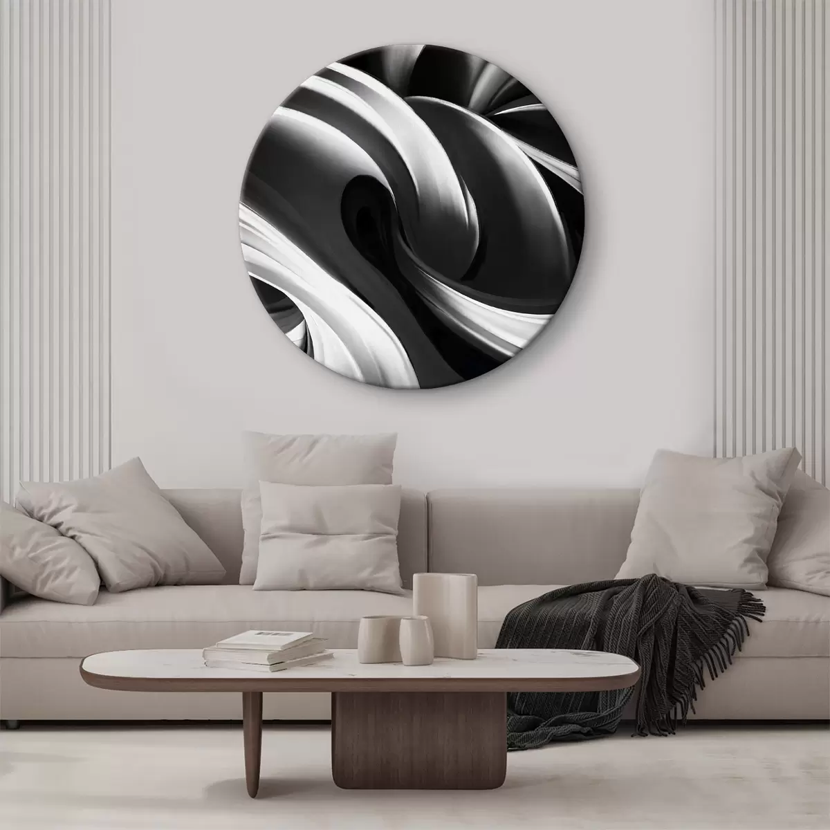 Cuadros redondos Fondo blanco y negro arremolinado r38270