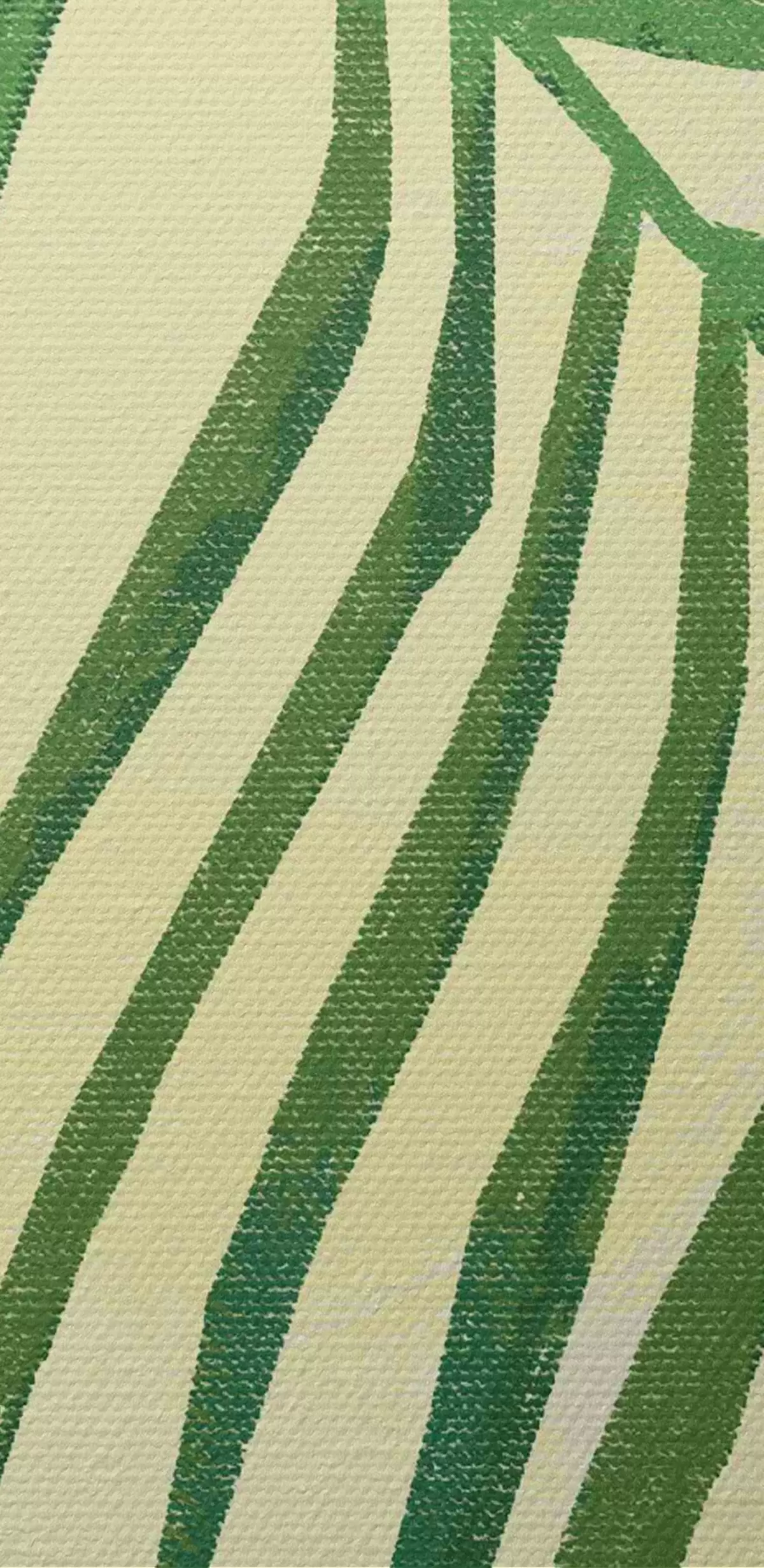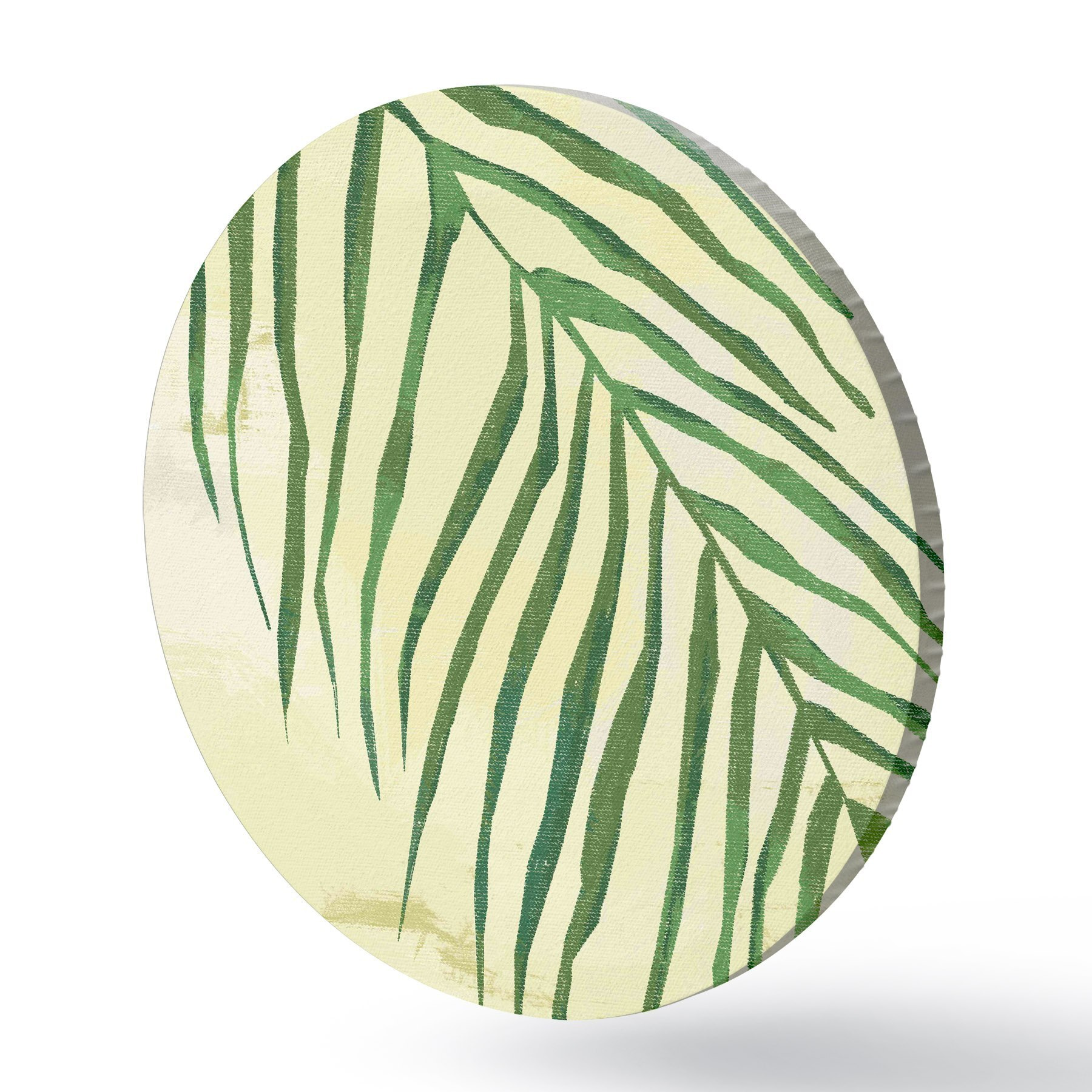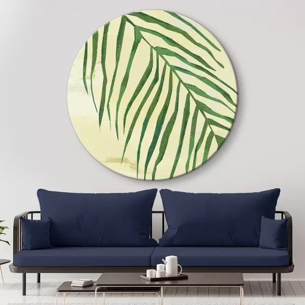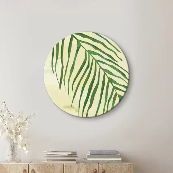 Cuadros redondos Rama de palmera, tropical, primer plano, planta, hojas finas, verdes y amarillas r38282