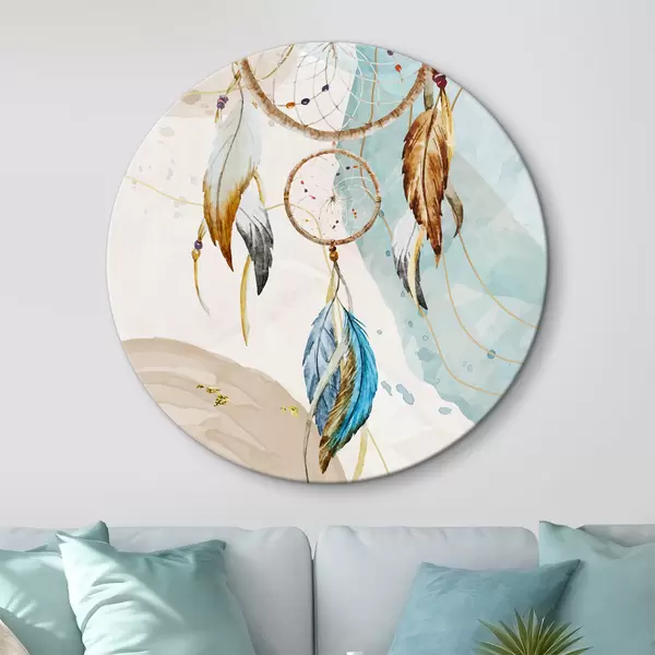 Cuadros redondos acuarela, atrapasueños, plumas, pasteles r38330