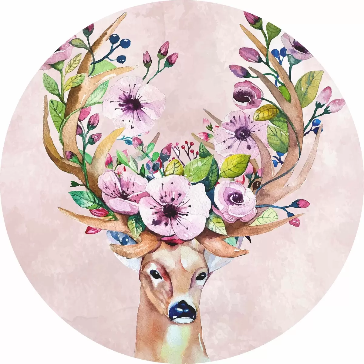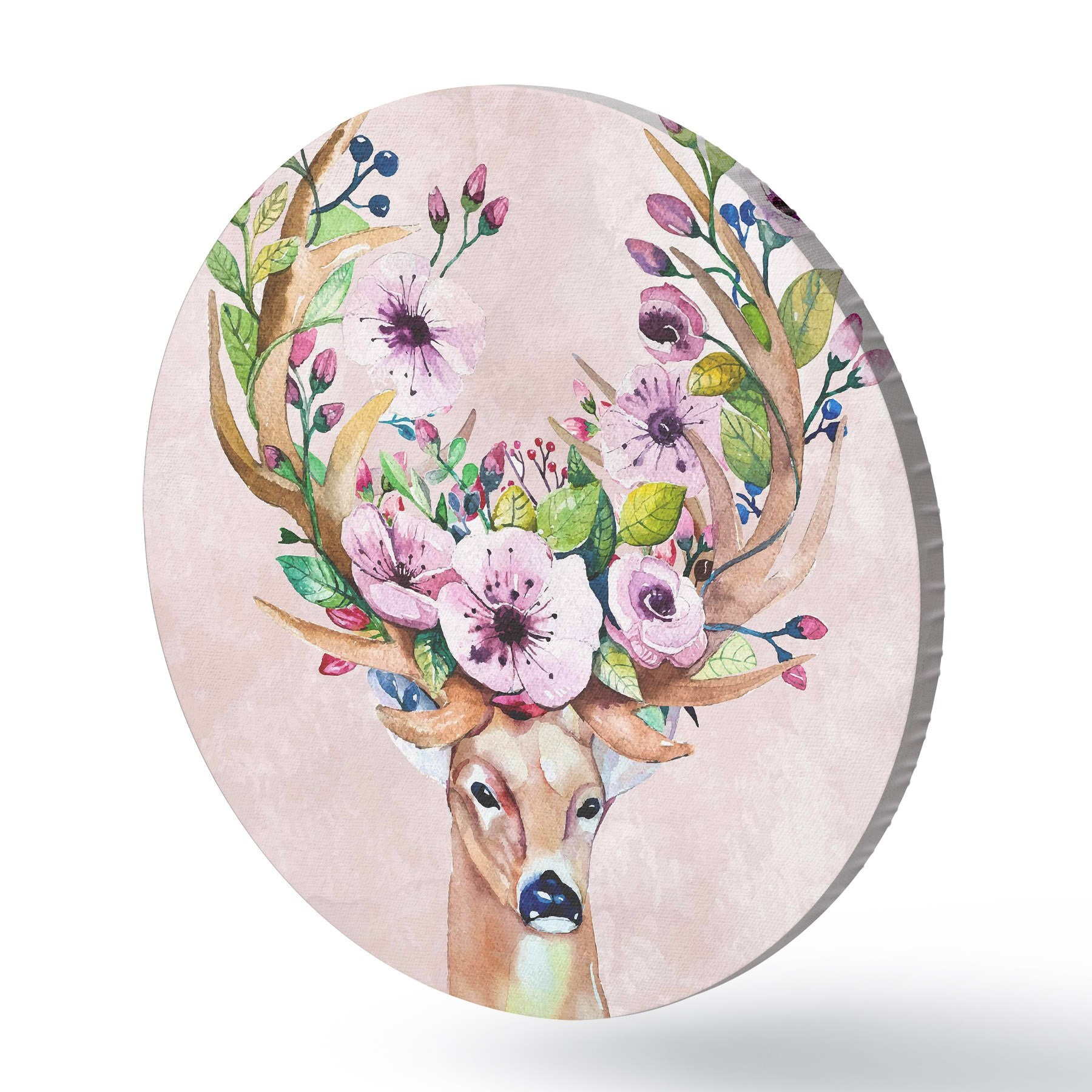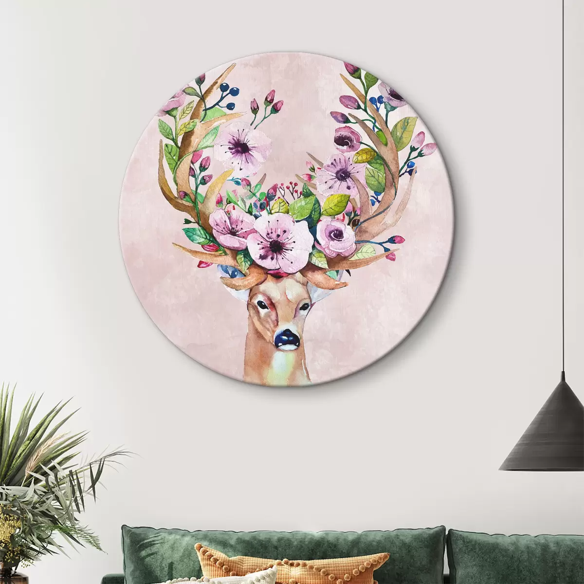 Cuadros redondos Acuarela de un ciervo con flores en la cornamenta r38331