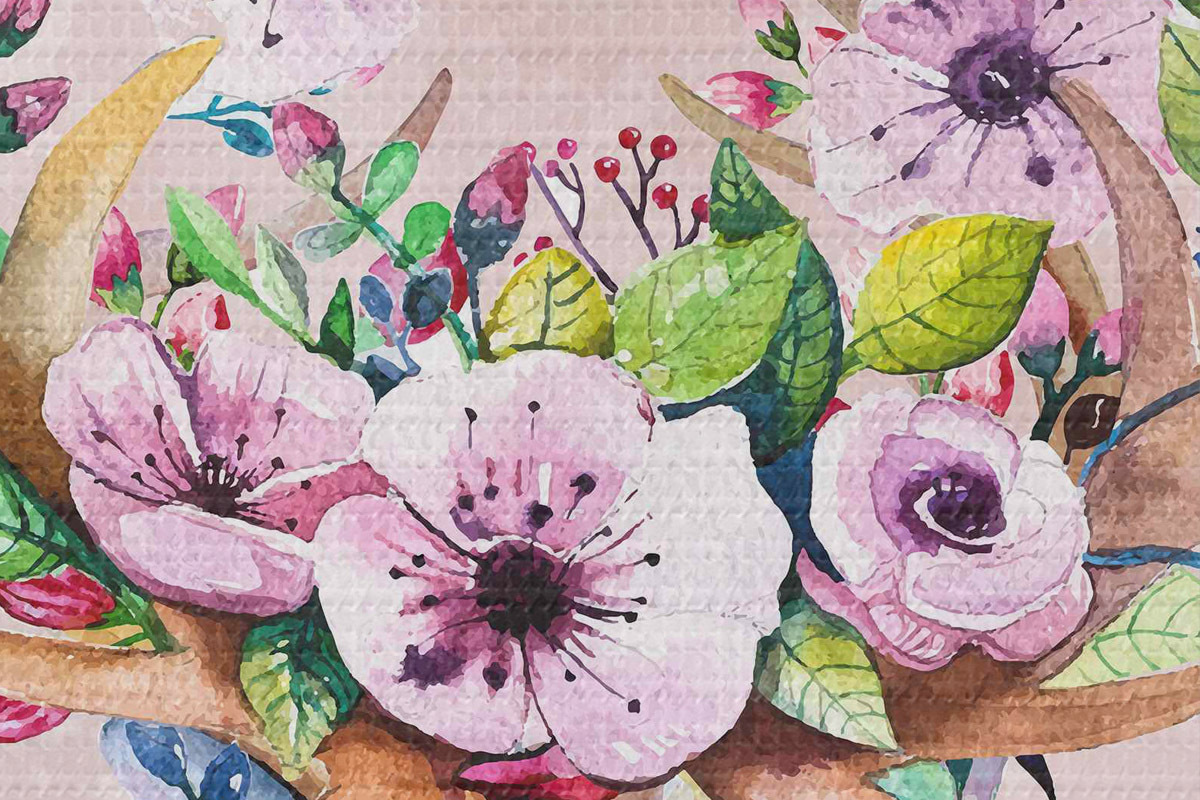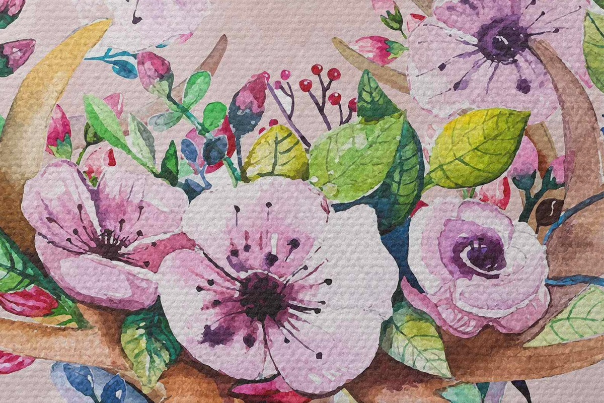 Foto Acuarela de un ciervo con flores en la cornamenta Nr r38331