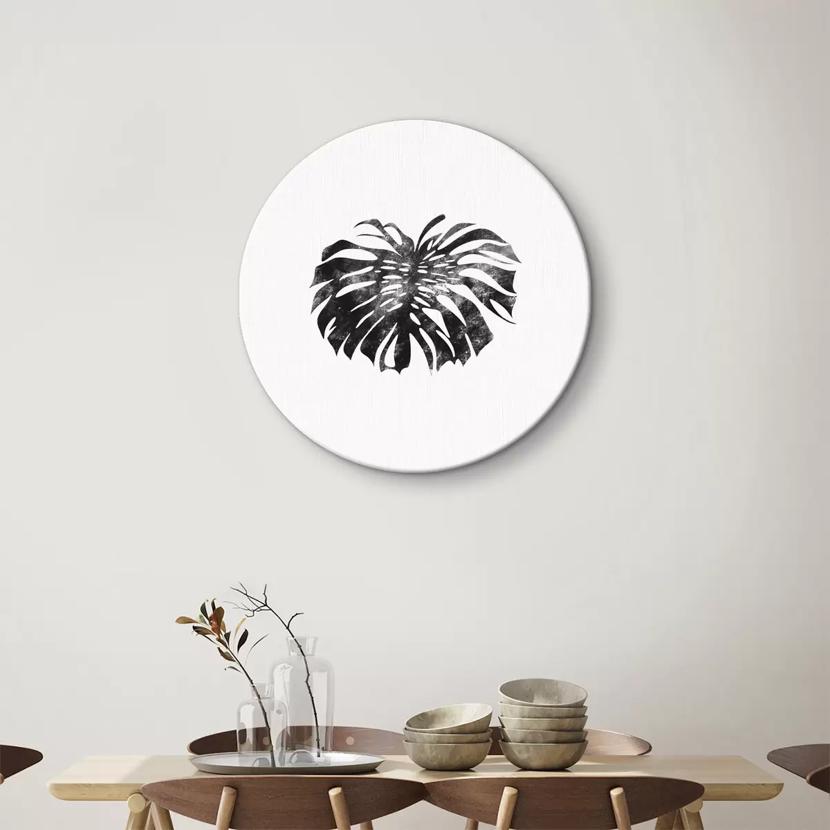 Cuadros redondos Imagen en blanco y negro de una hoja r38348