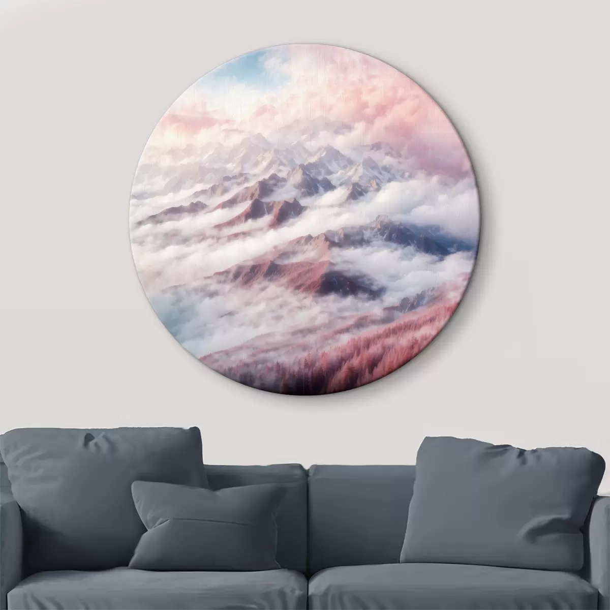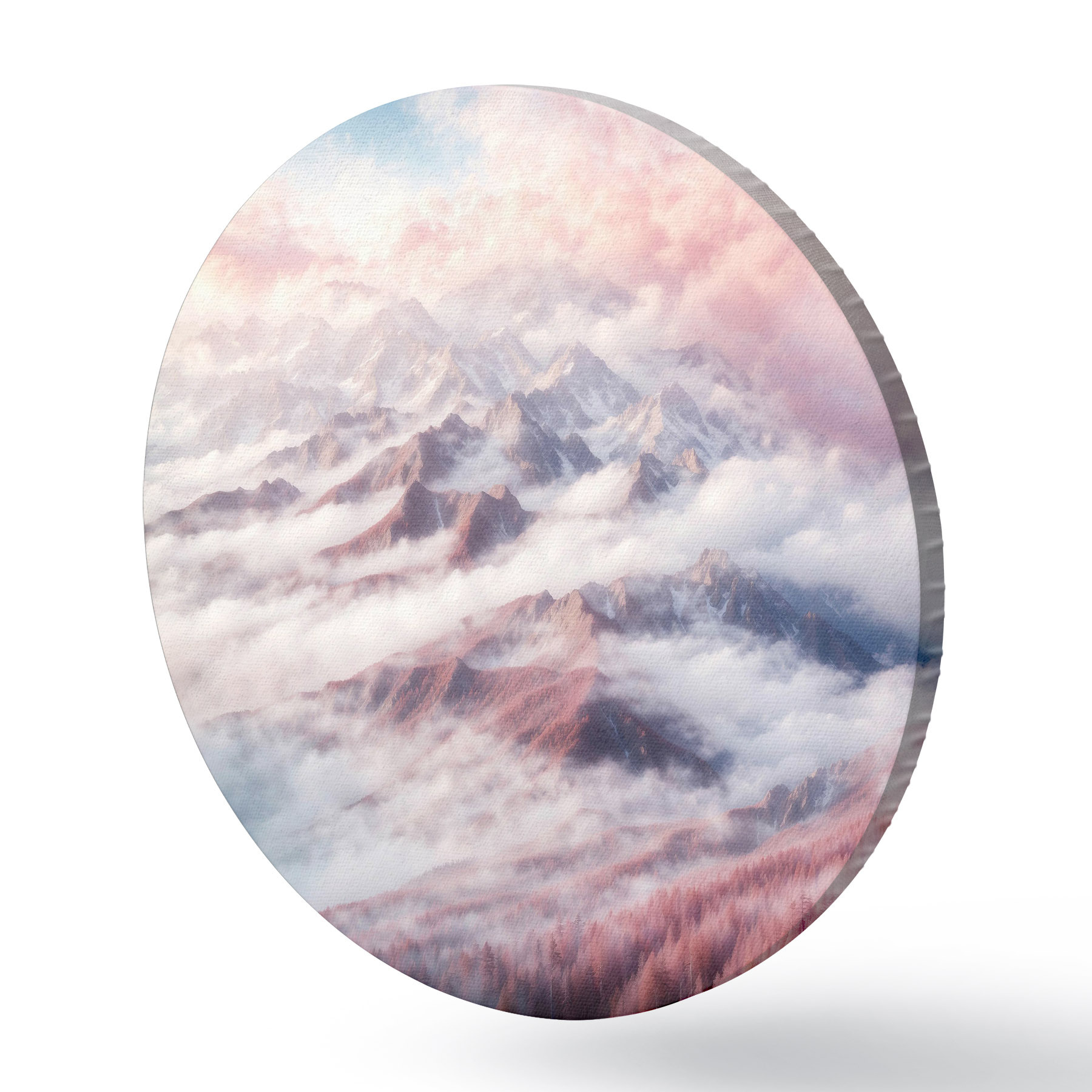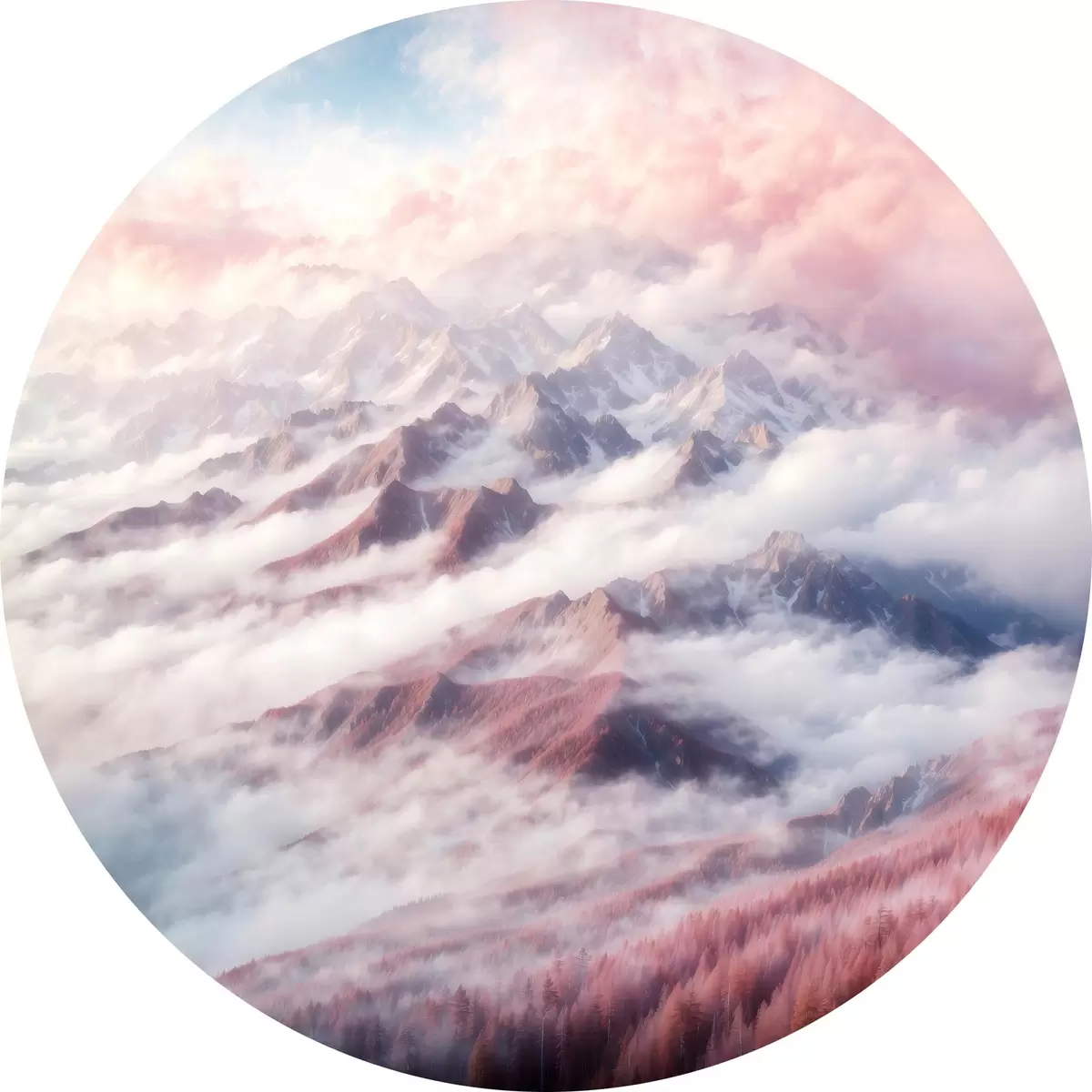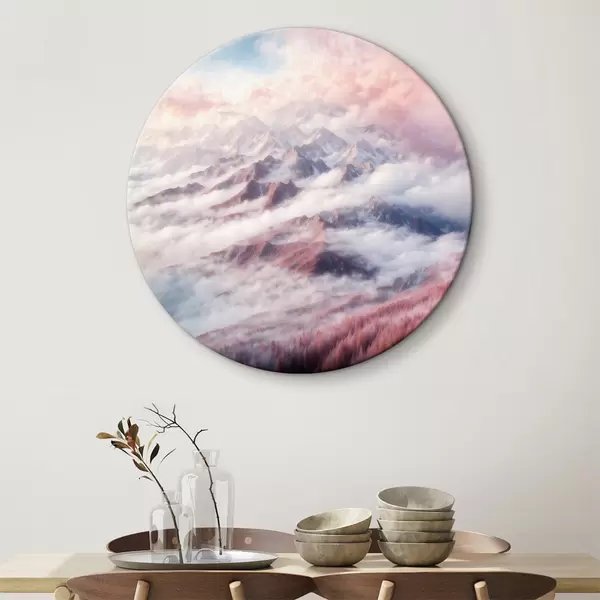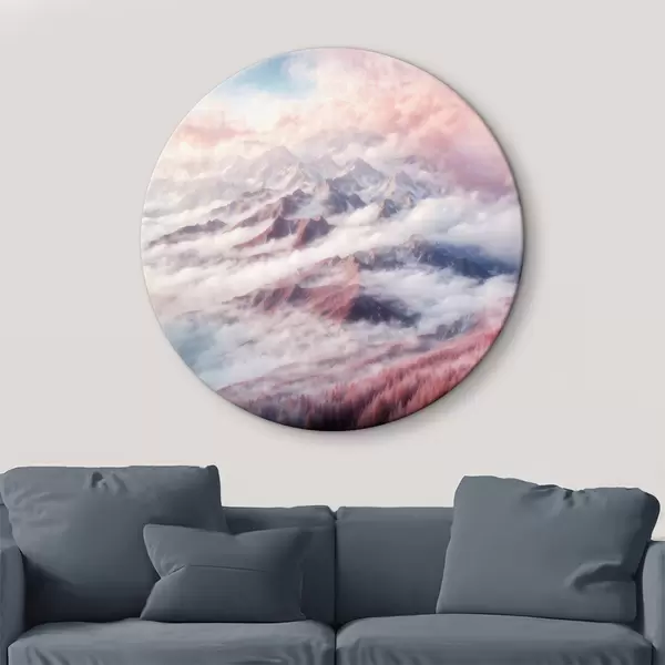 Cuadros redondos Cordillera con nubes y árboles r38358