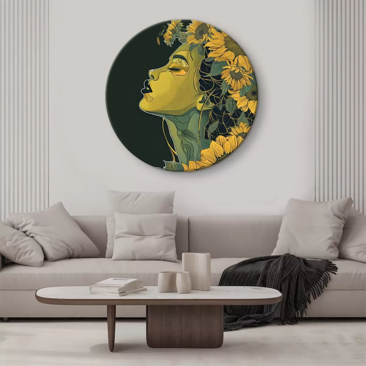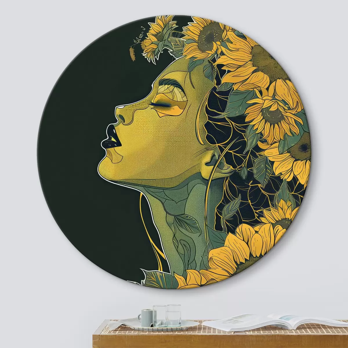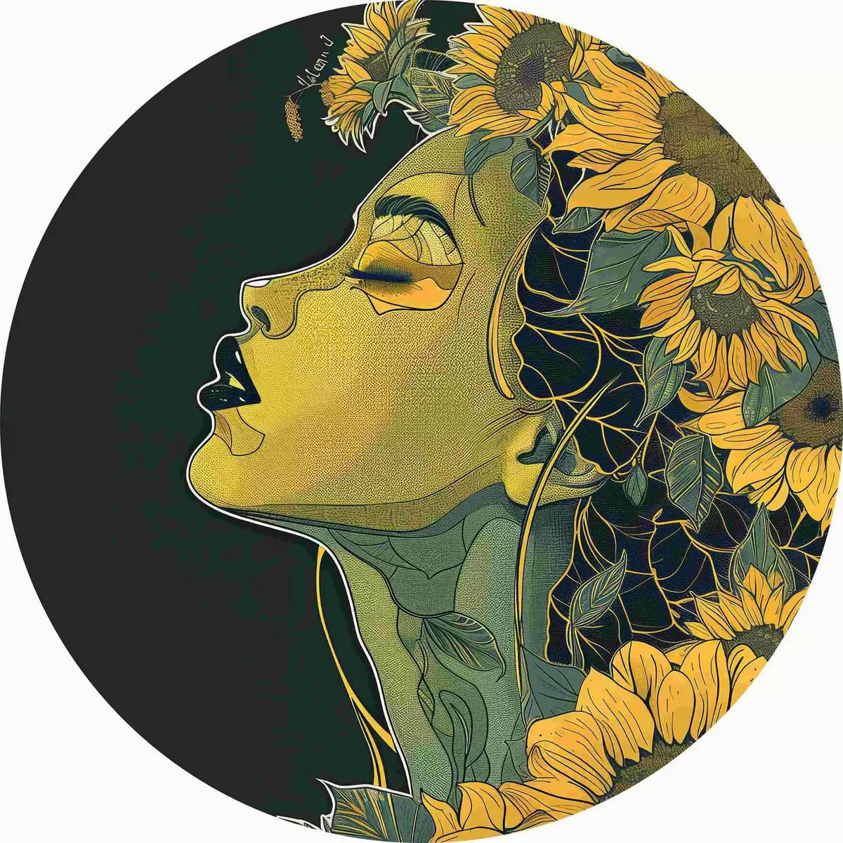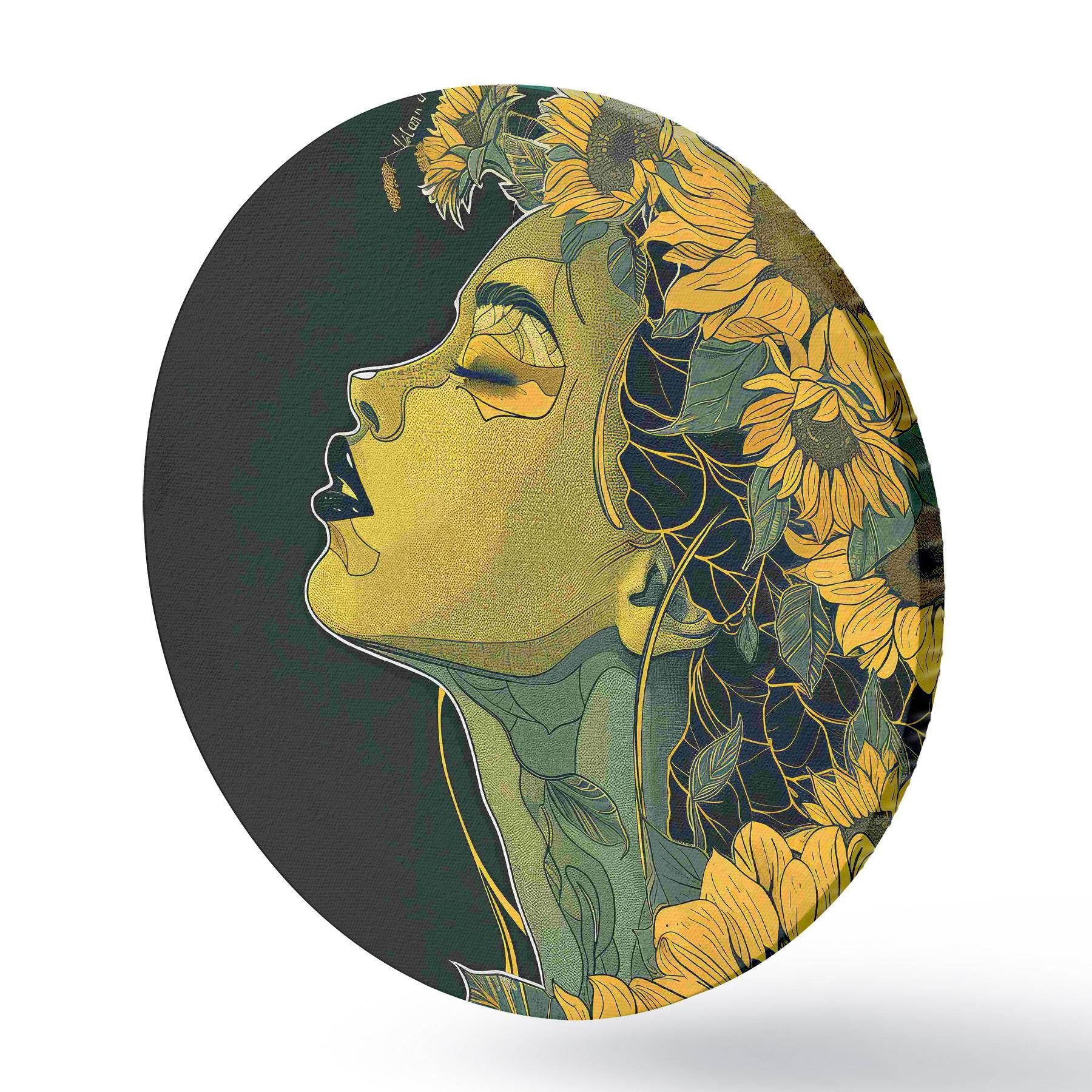 Cuadros redondos Mujer con los ojos cerrados y flores en el pelo r38376