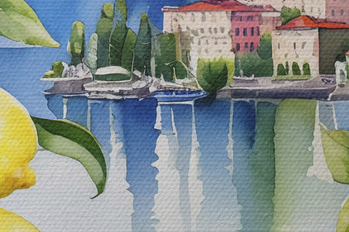 Foto Lago Como, acuarela, Italia, verano, montañas, limonero, mar, ciudad vieja Nr r38398