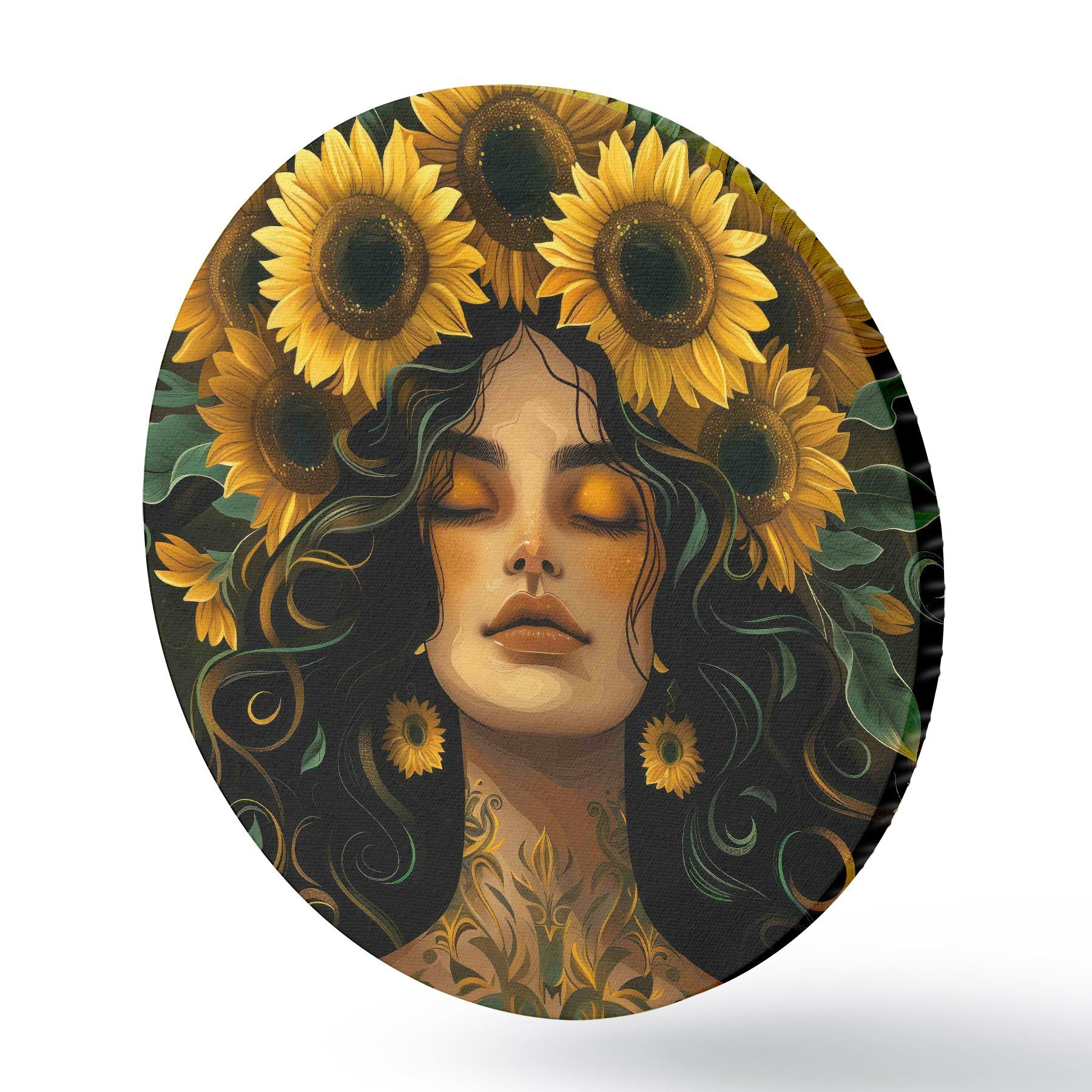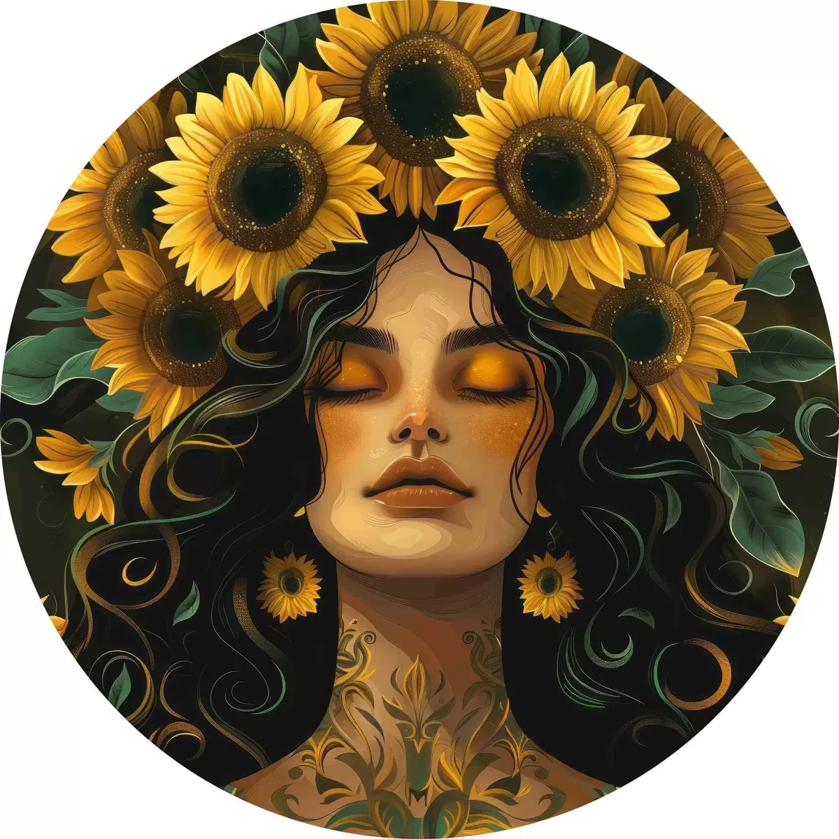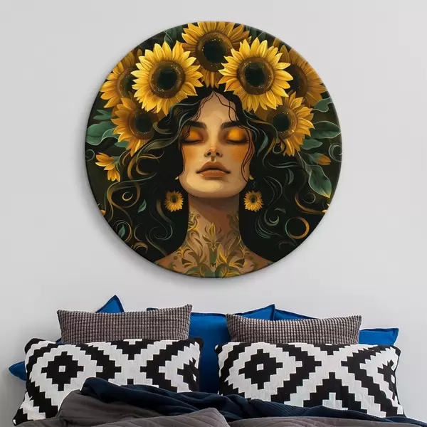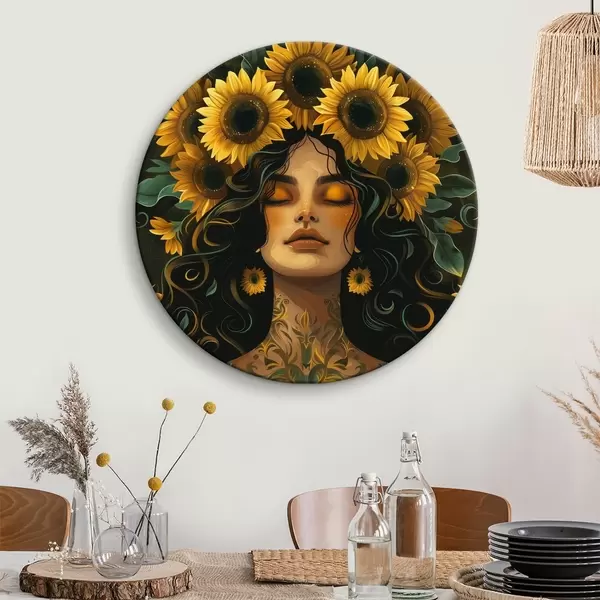 Cuadros redondos Mujer con girasoles en el pelo r38412