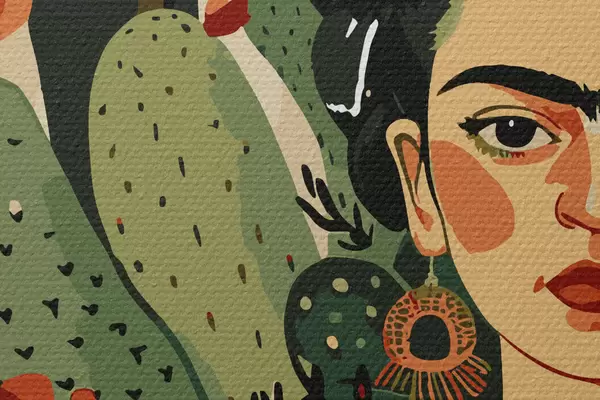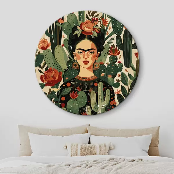 Cuadros redondos Frida sobre fondo de cactus r38415