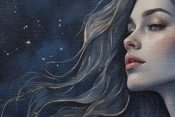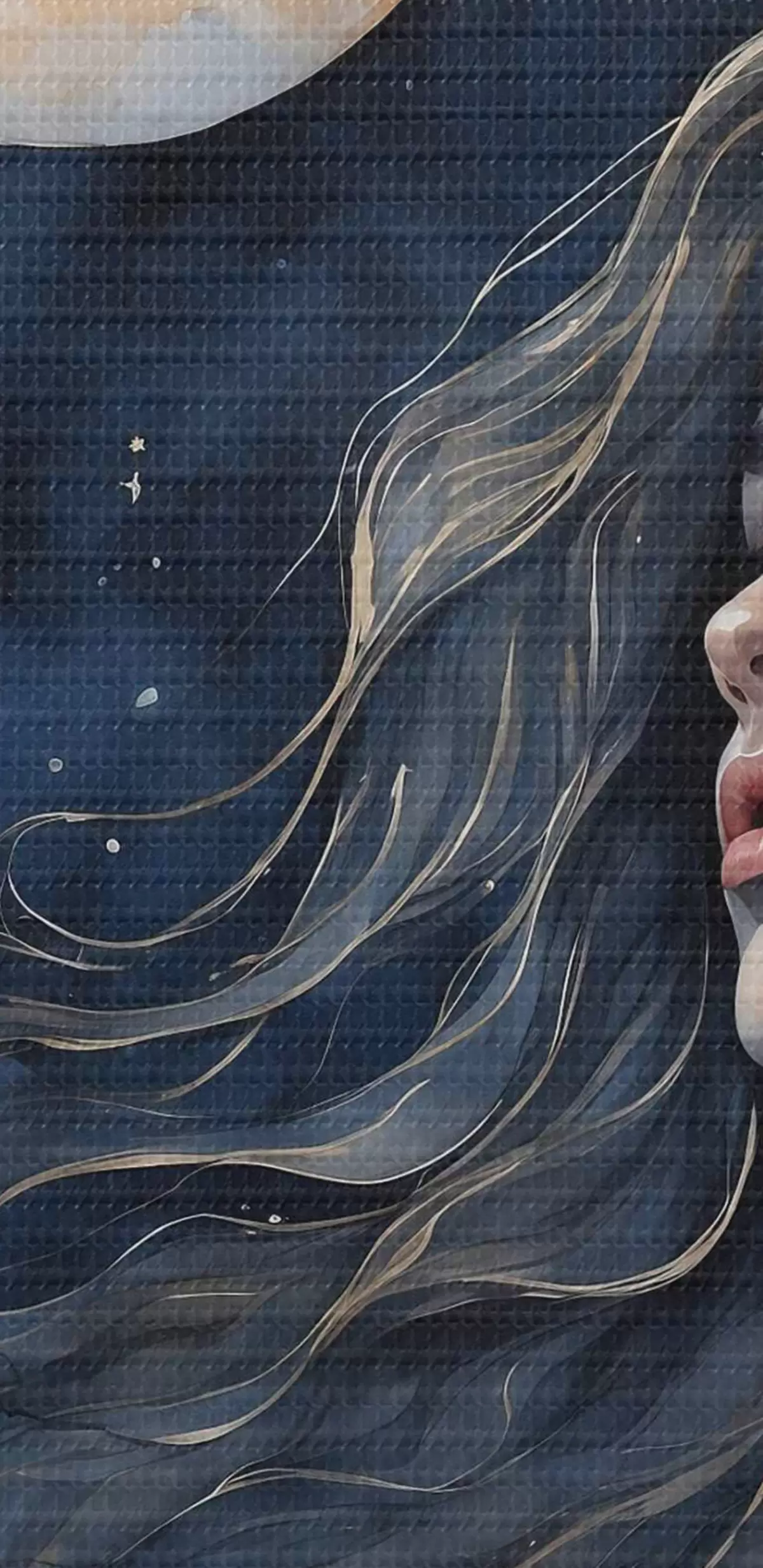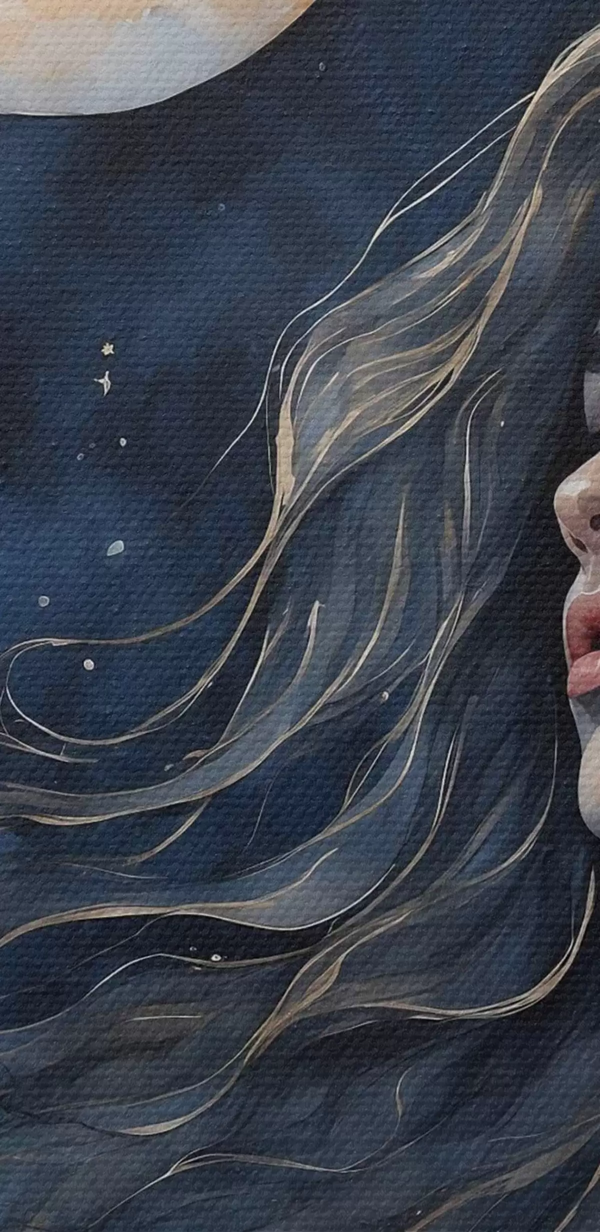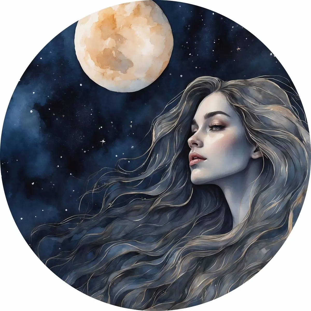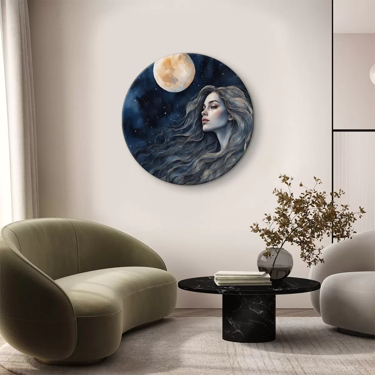 Cuadros redondos Mujer con pelo largo y la luna r38438