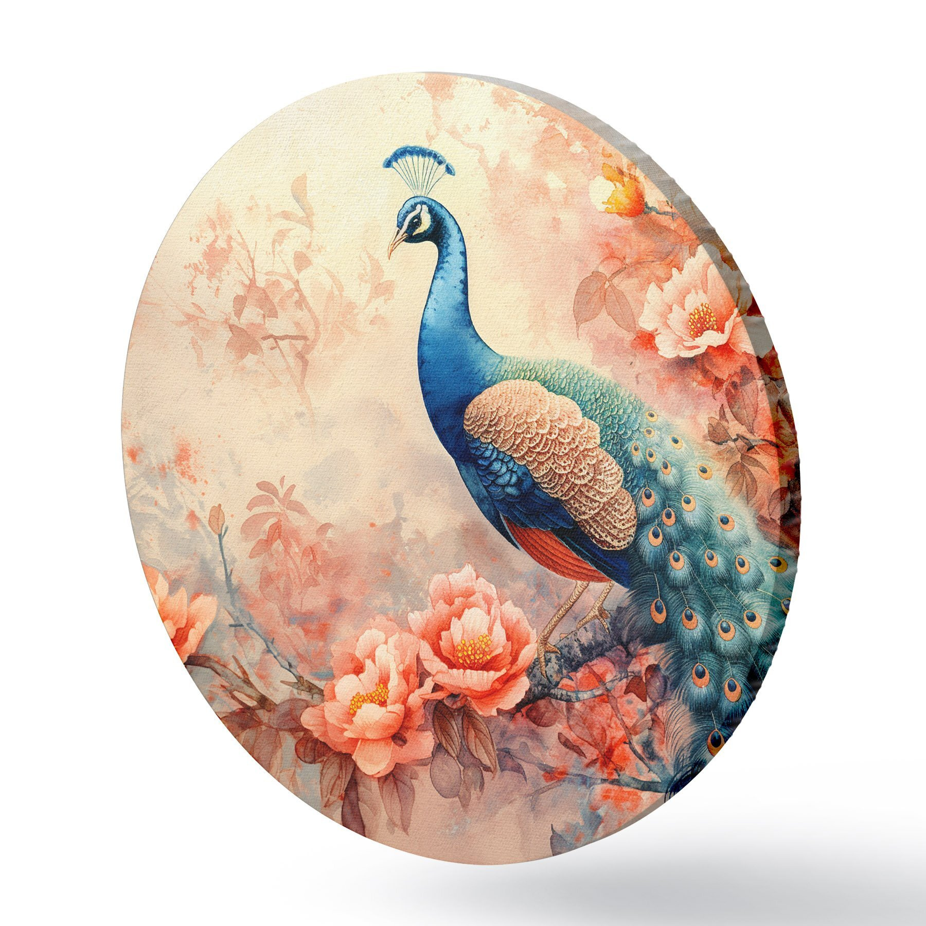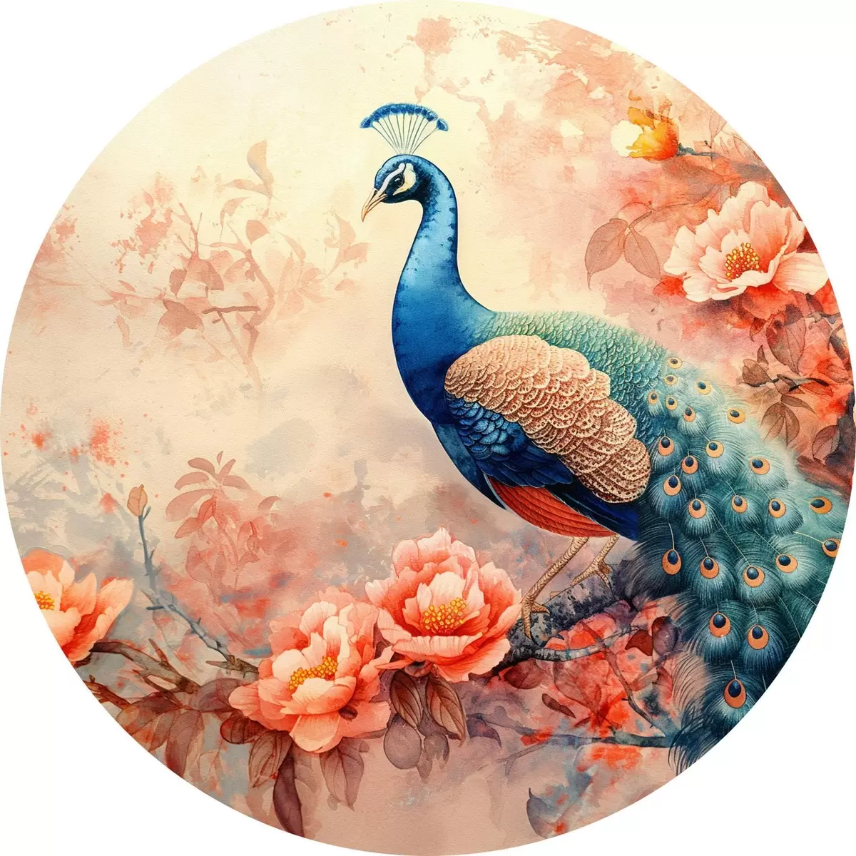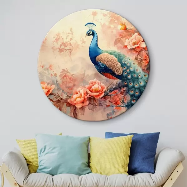Cuadros redondos pavo real en flores r38454