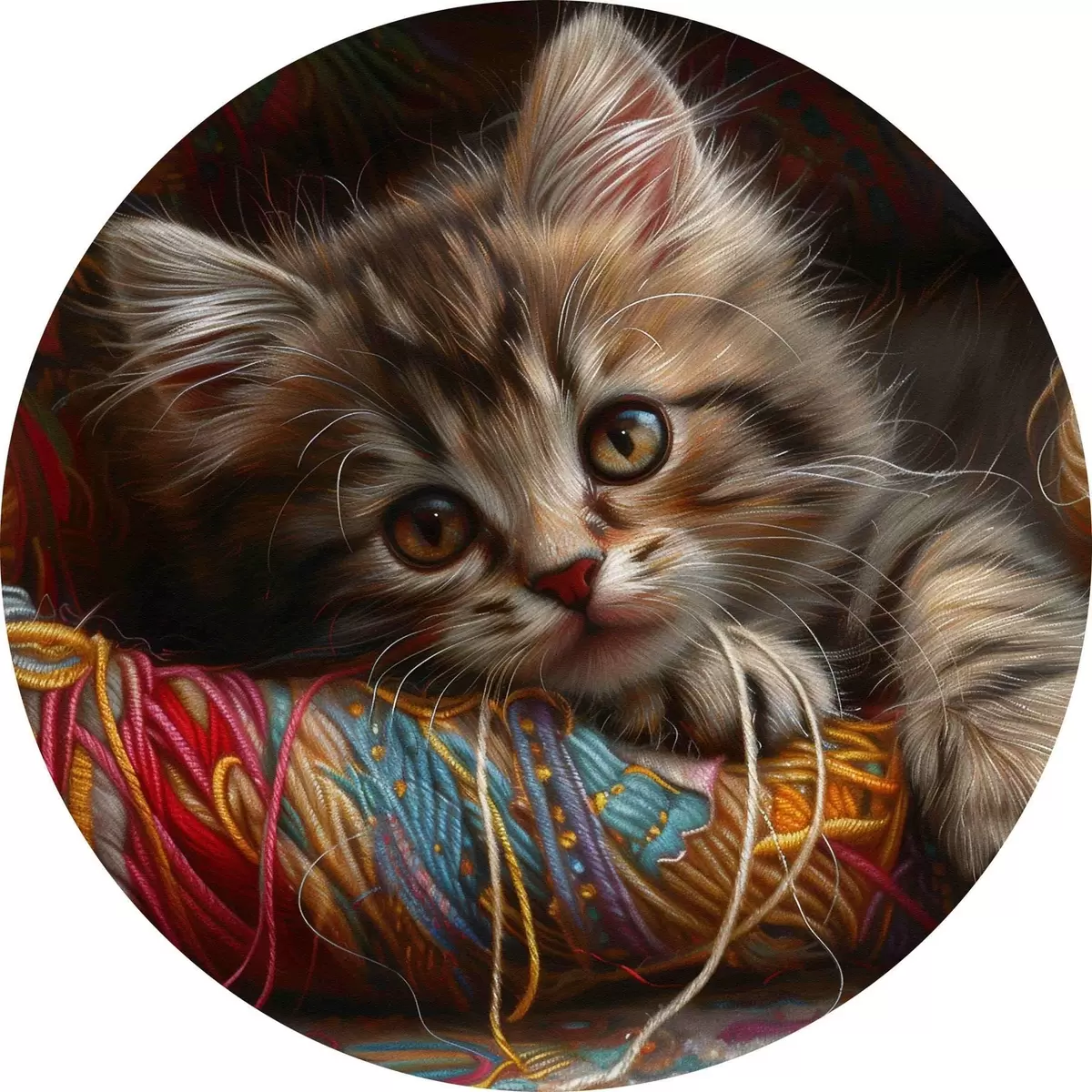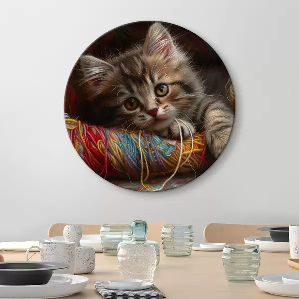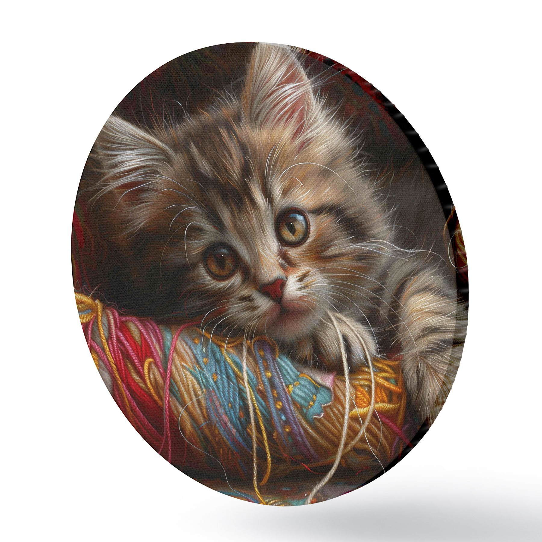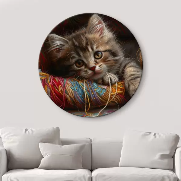 Cuadros redondos Un gato tumbado sobre un ovillo de lana r38465