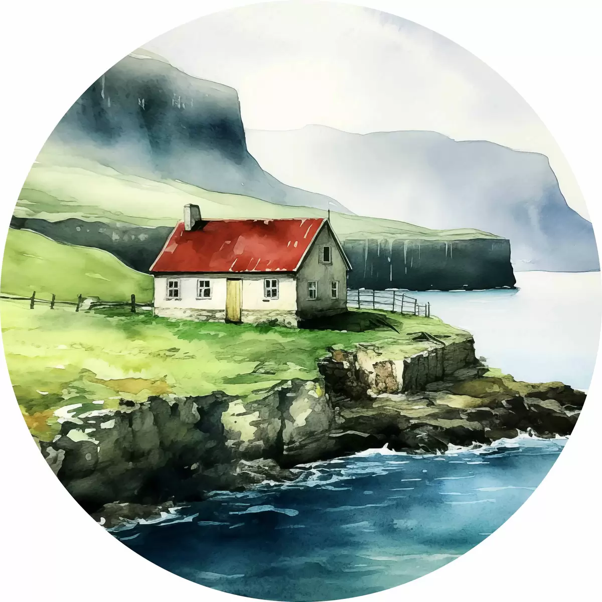 Cuadros redondos Casa en un acantilado sobre el agua r38478