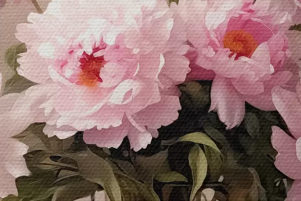Foto Peonías rosas en un jarrón de cristal sobre fondo negro, pintura al óleo de imitación, flores Nr r38482