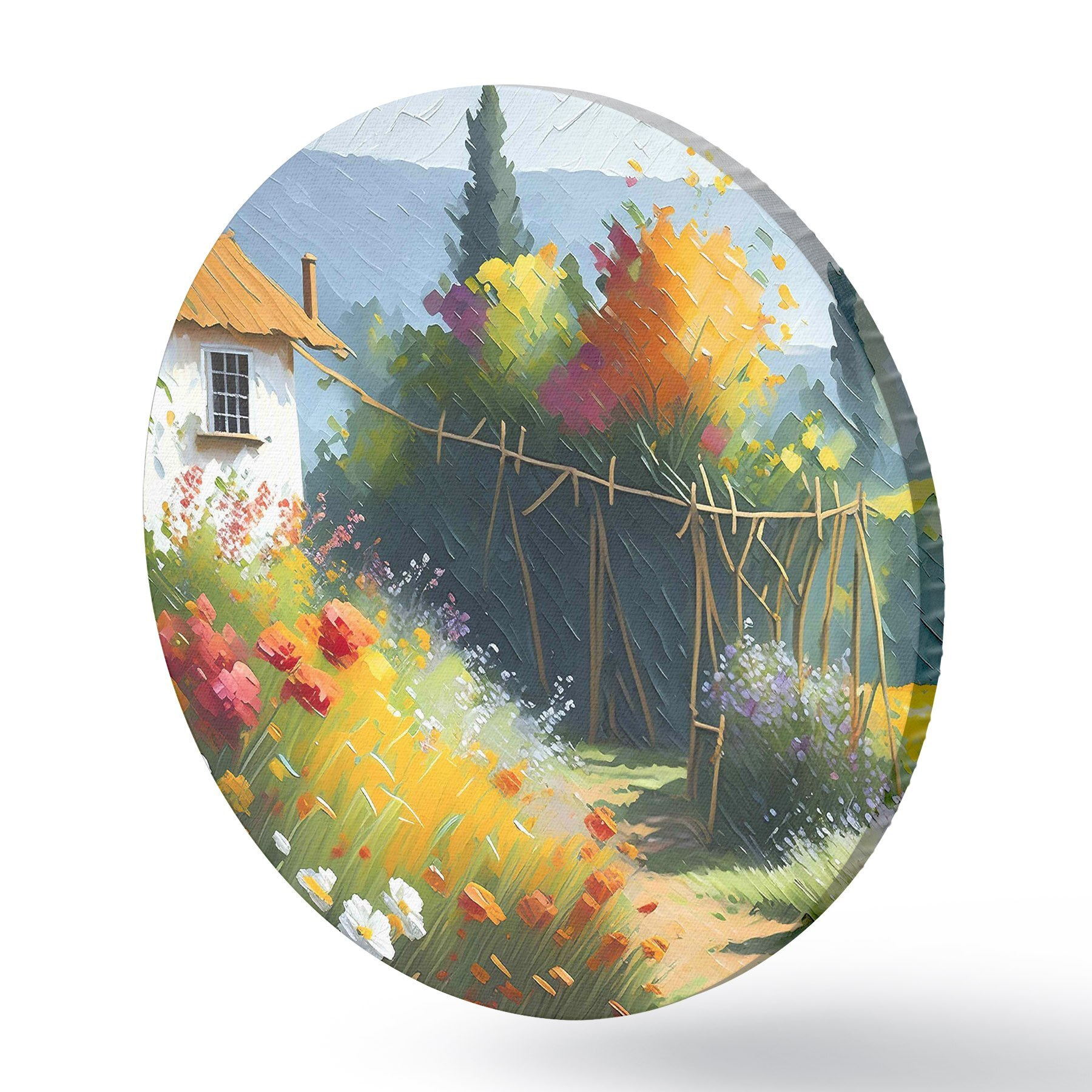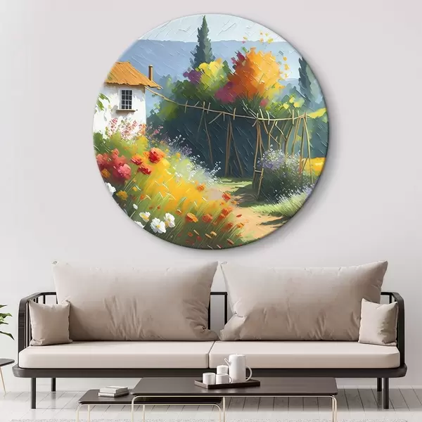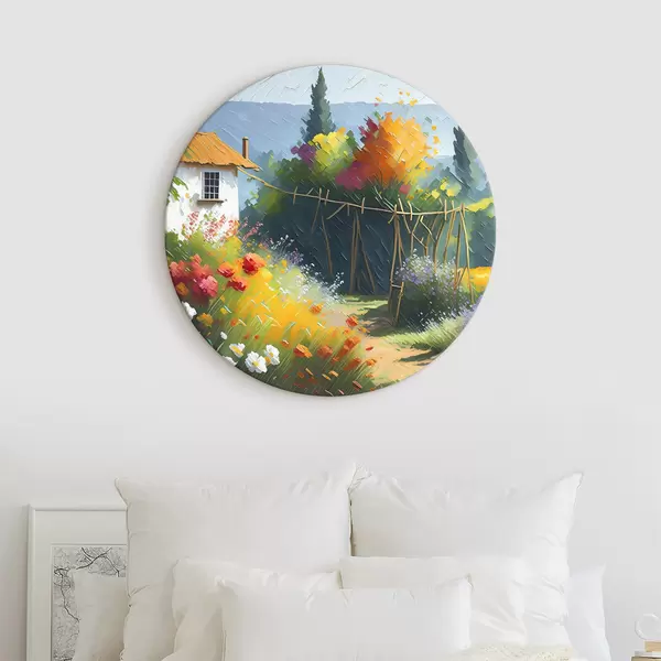 Cuadros redondos Pintar la casa y las flores r38489