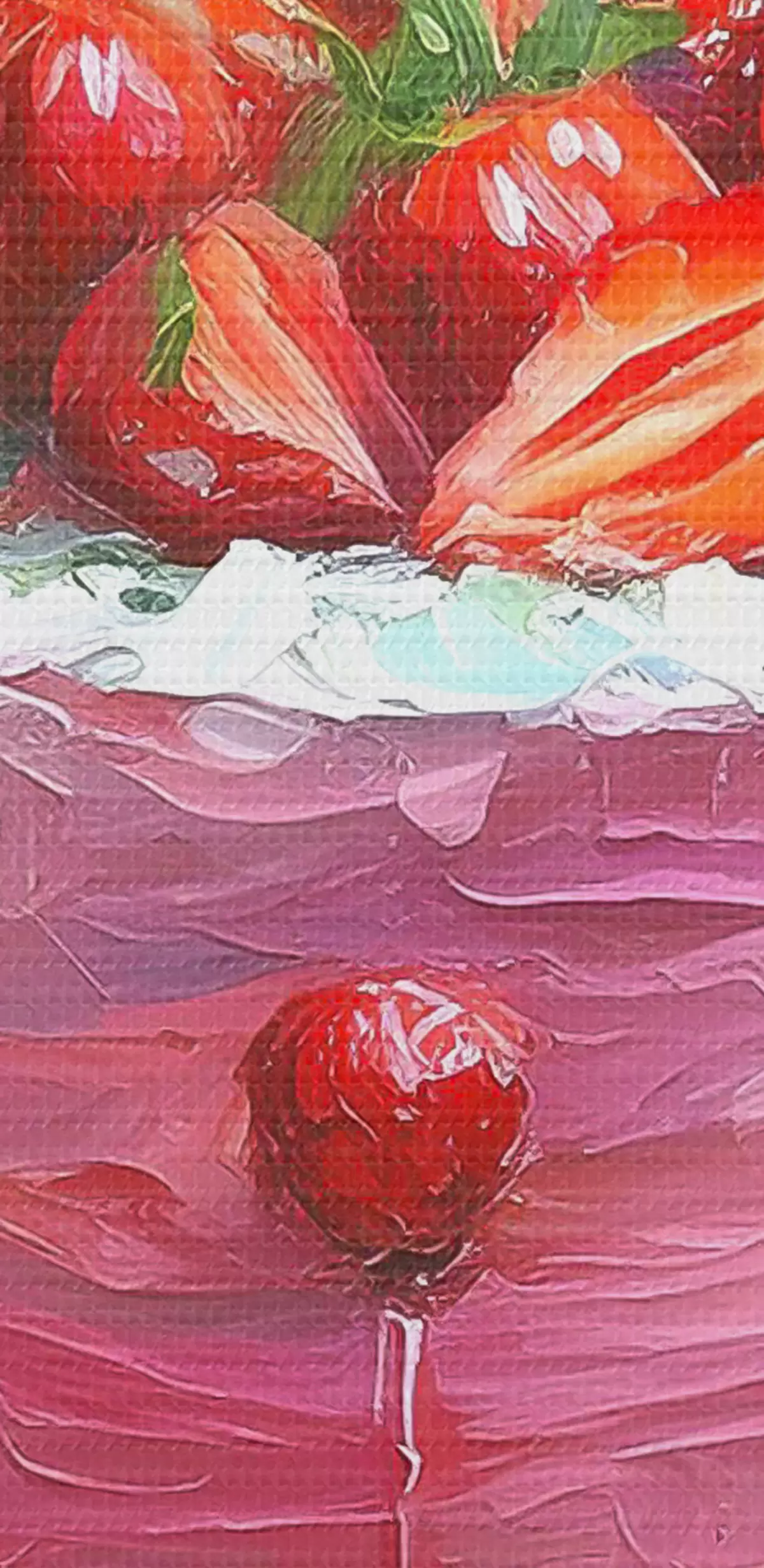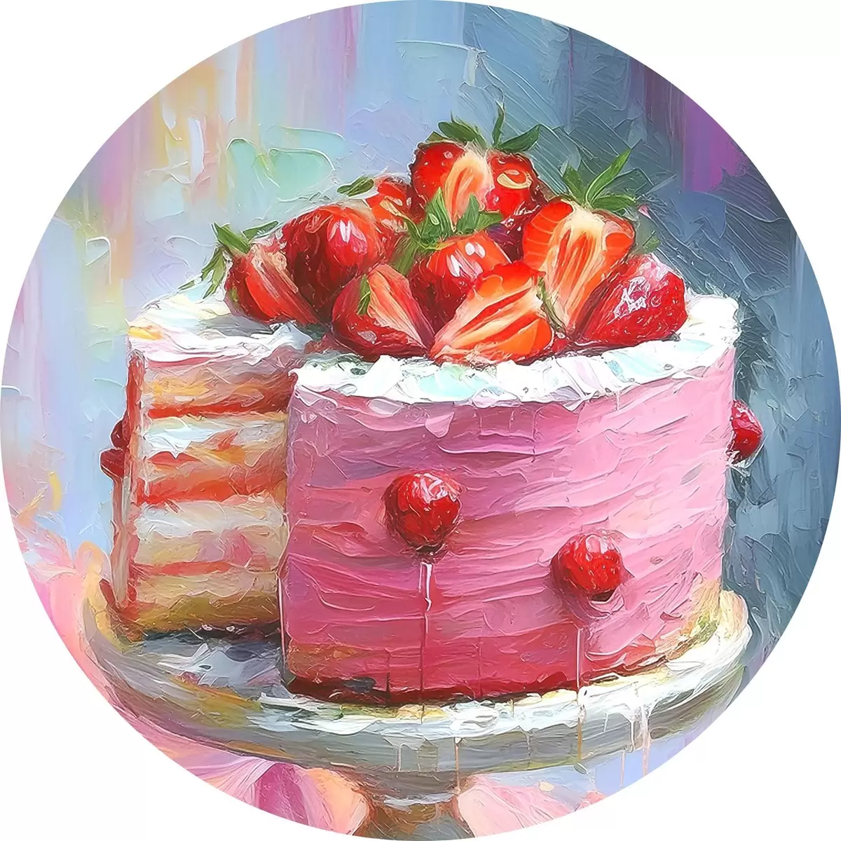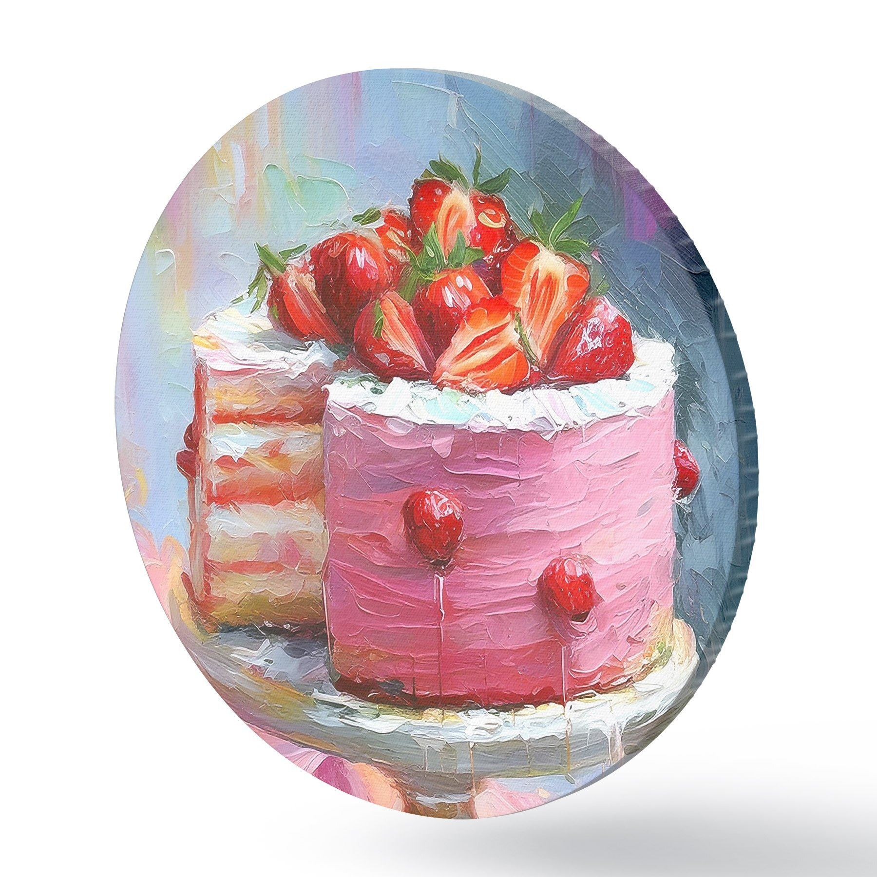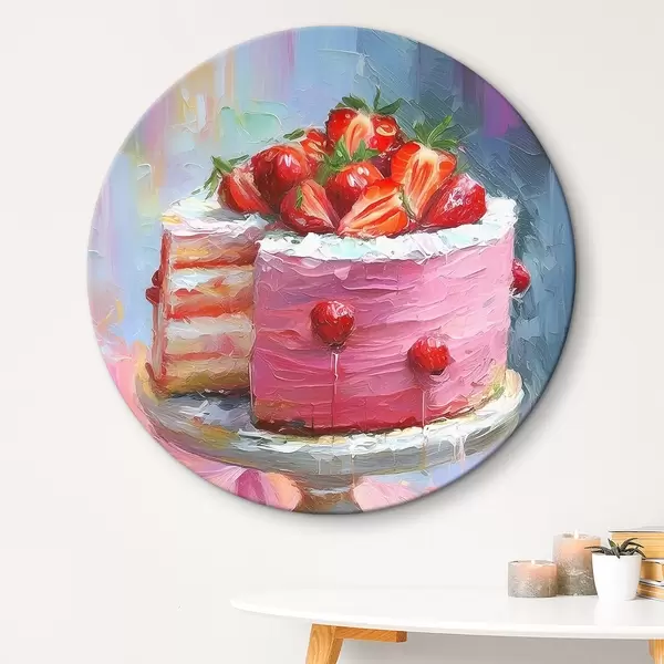 Cuadros redondos Pastel de fresa con crema, pintura al óleo, grandes pinceladas, bayas de verano, colores rosados r38499
