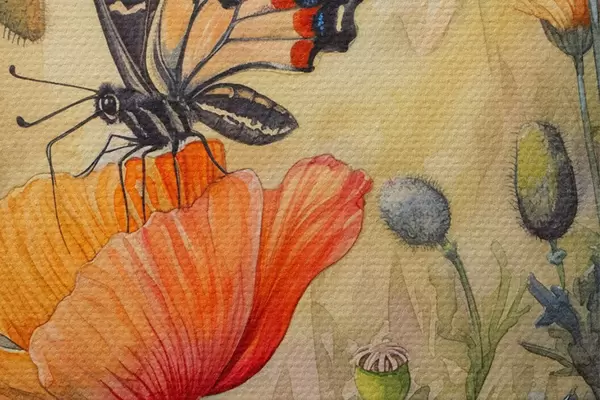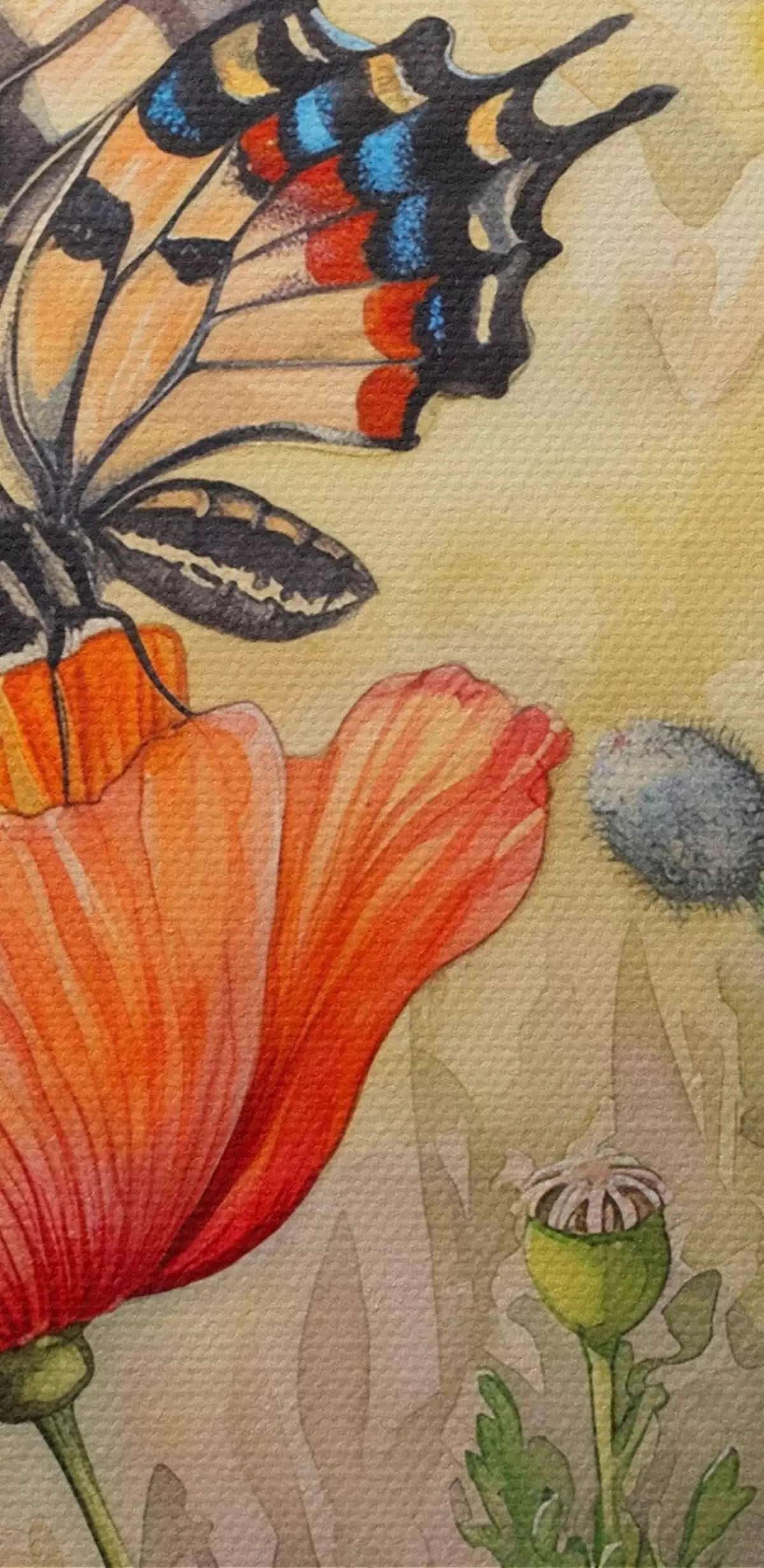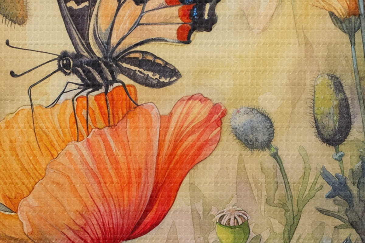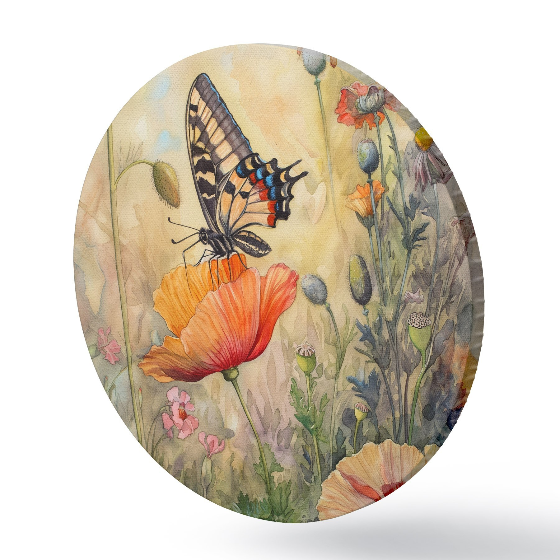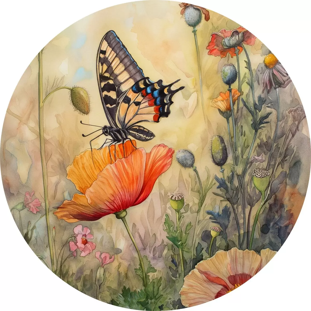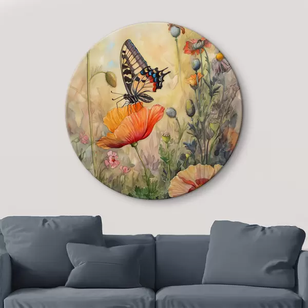 Cuadros redondos Campo de amapolas y mariposas r38520
