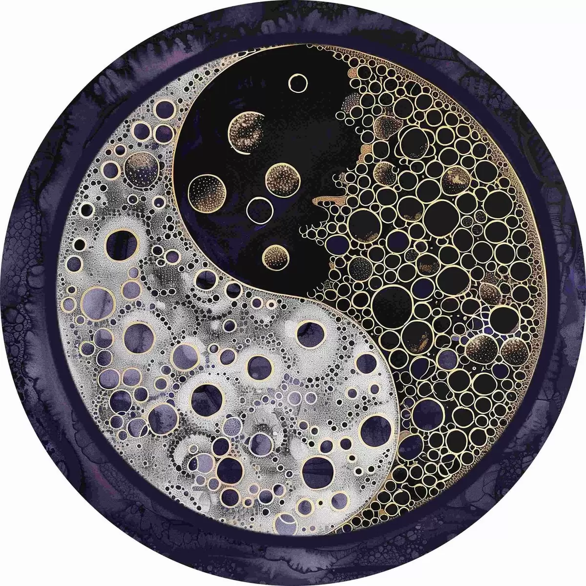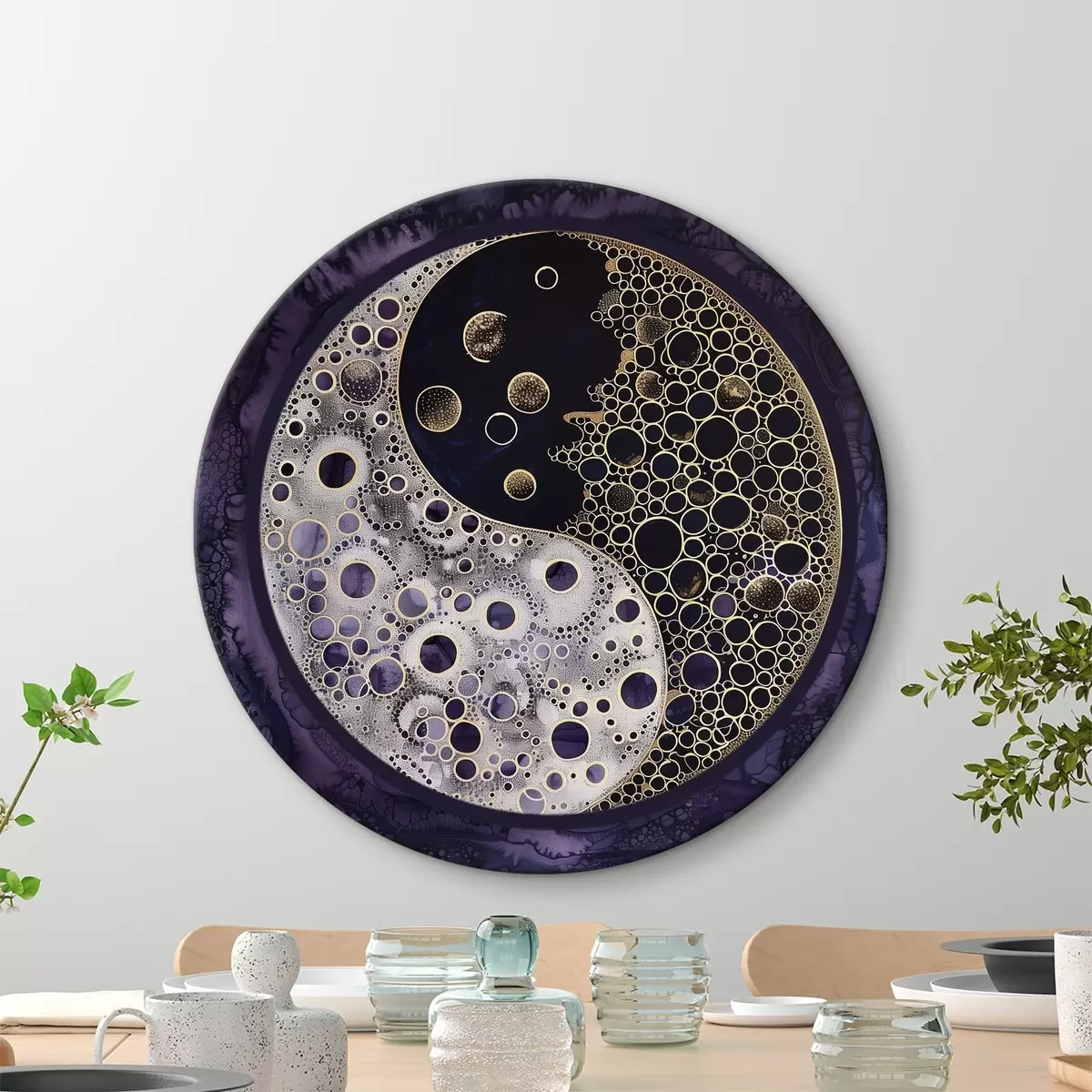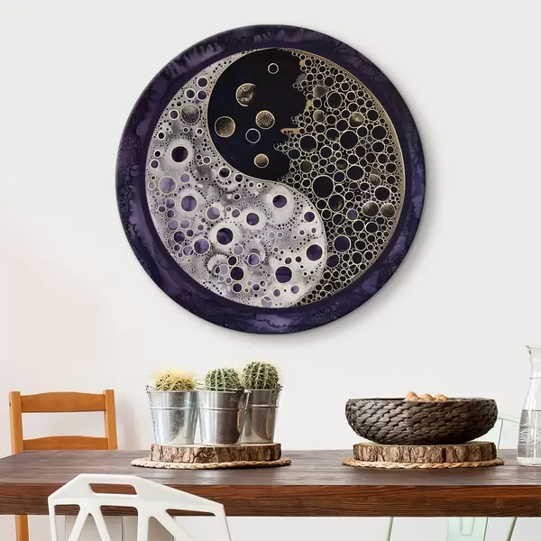 Cuadros redondos Símbolo del yin y el yang sobre fondo morado r38535