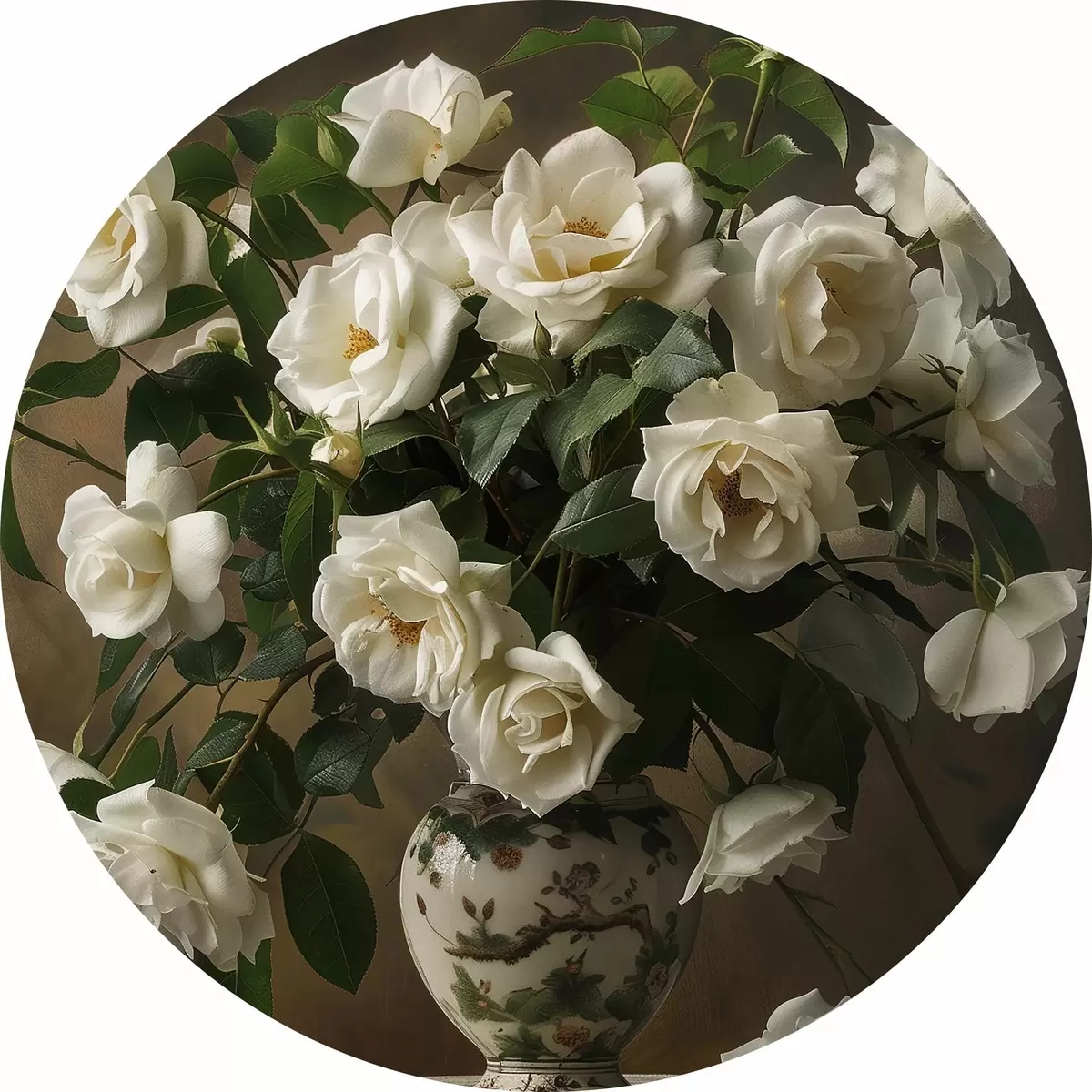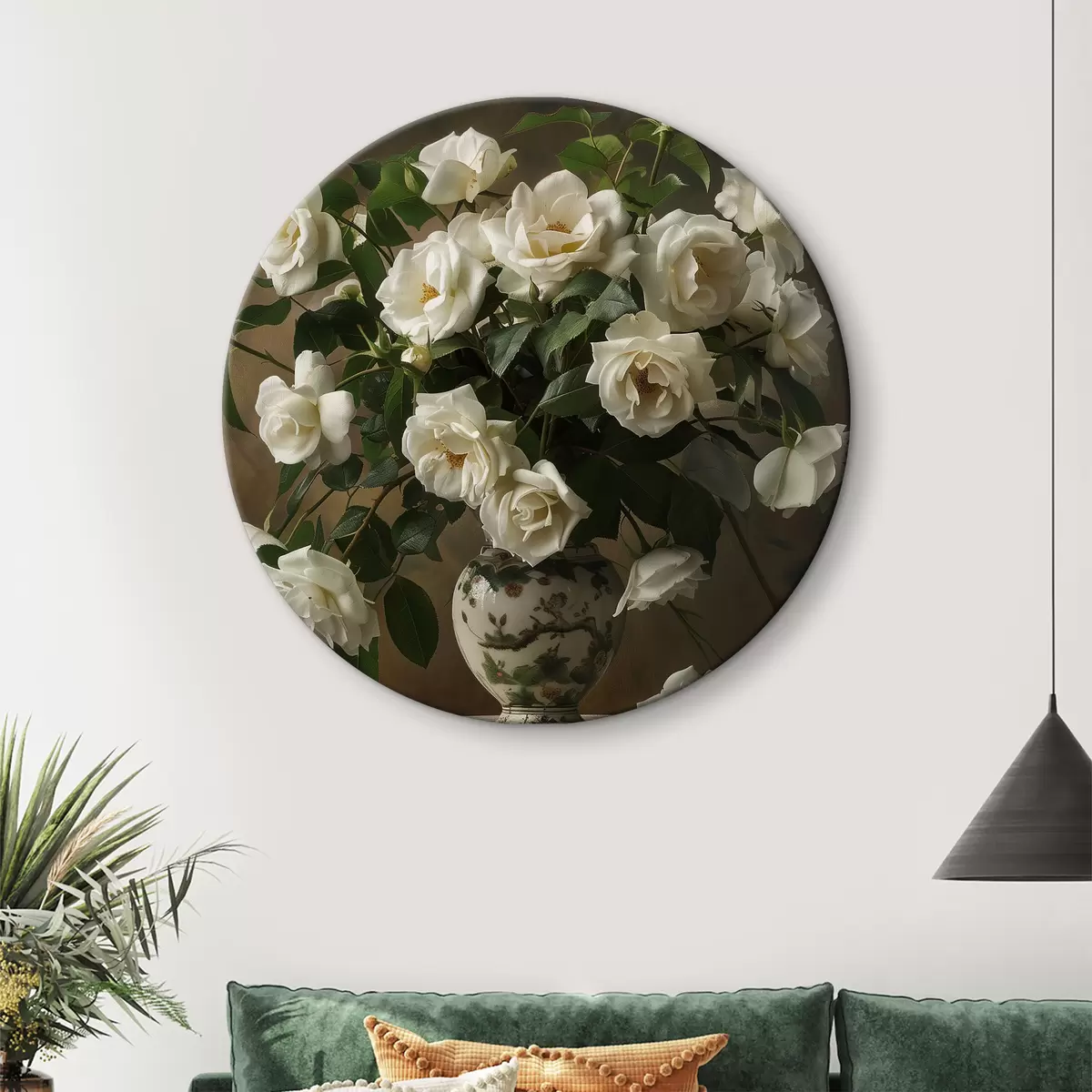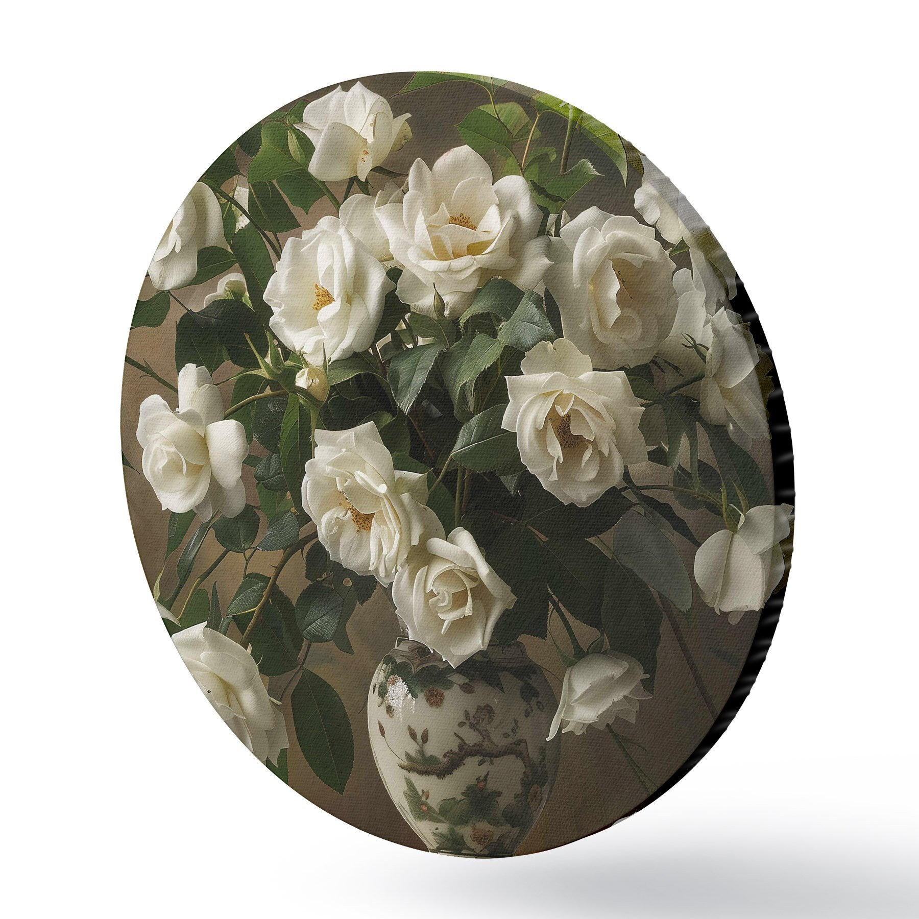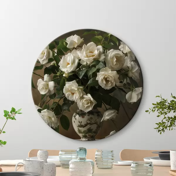 Cuadros redondos Jarrón con flores blancas r38556
