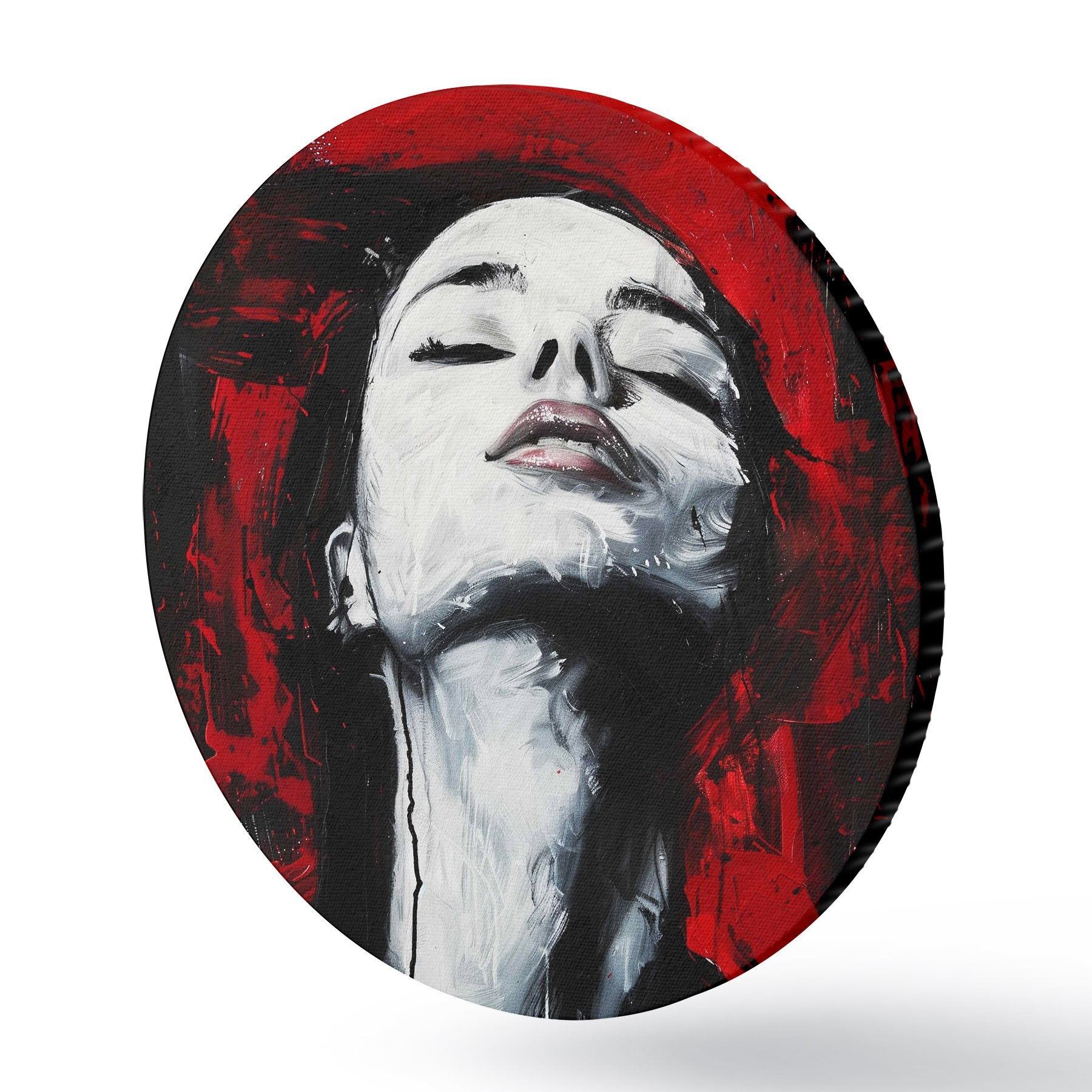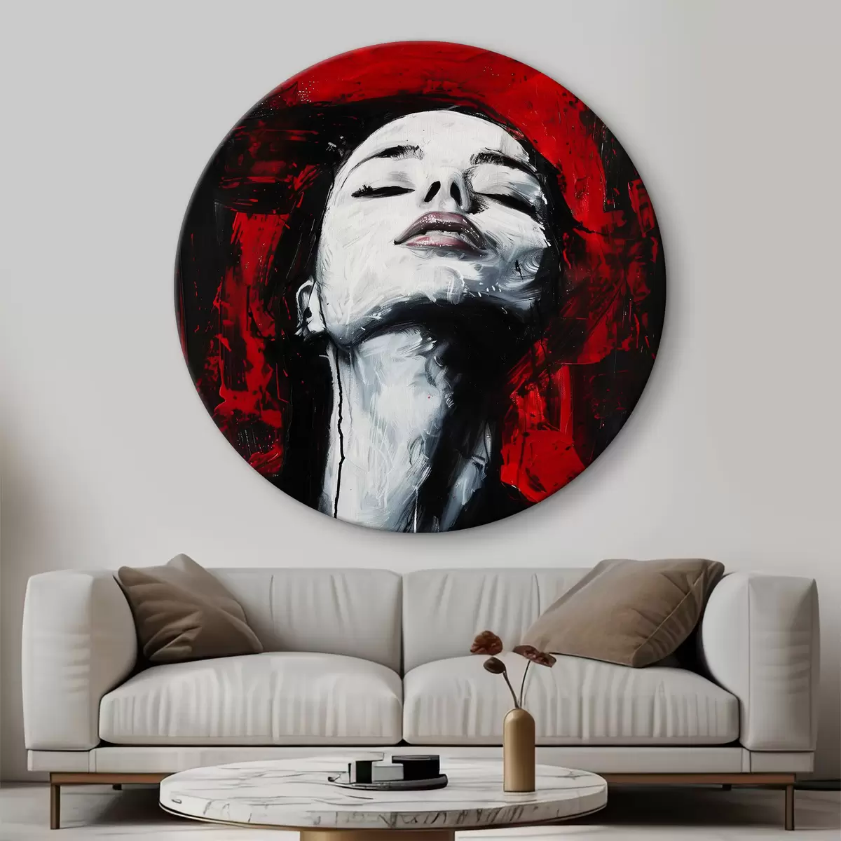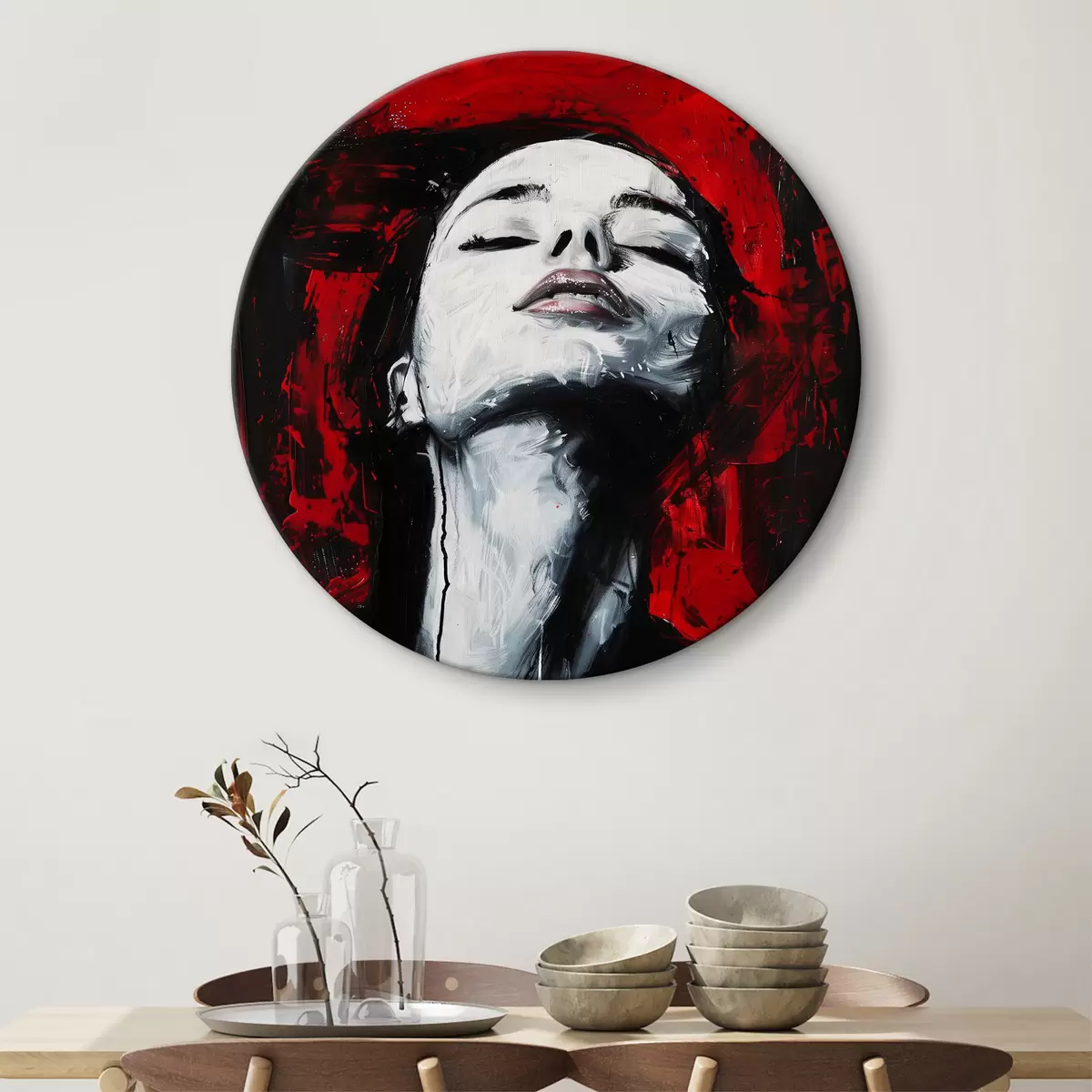 Cuadros redondos Imagen de una mujer con los ojos cerrados con el Museo Andy Warhol de fondo r38557